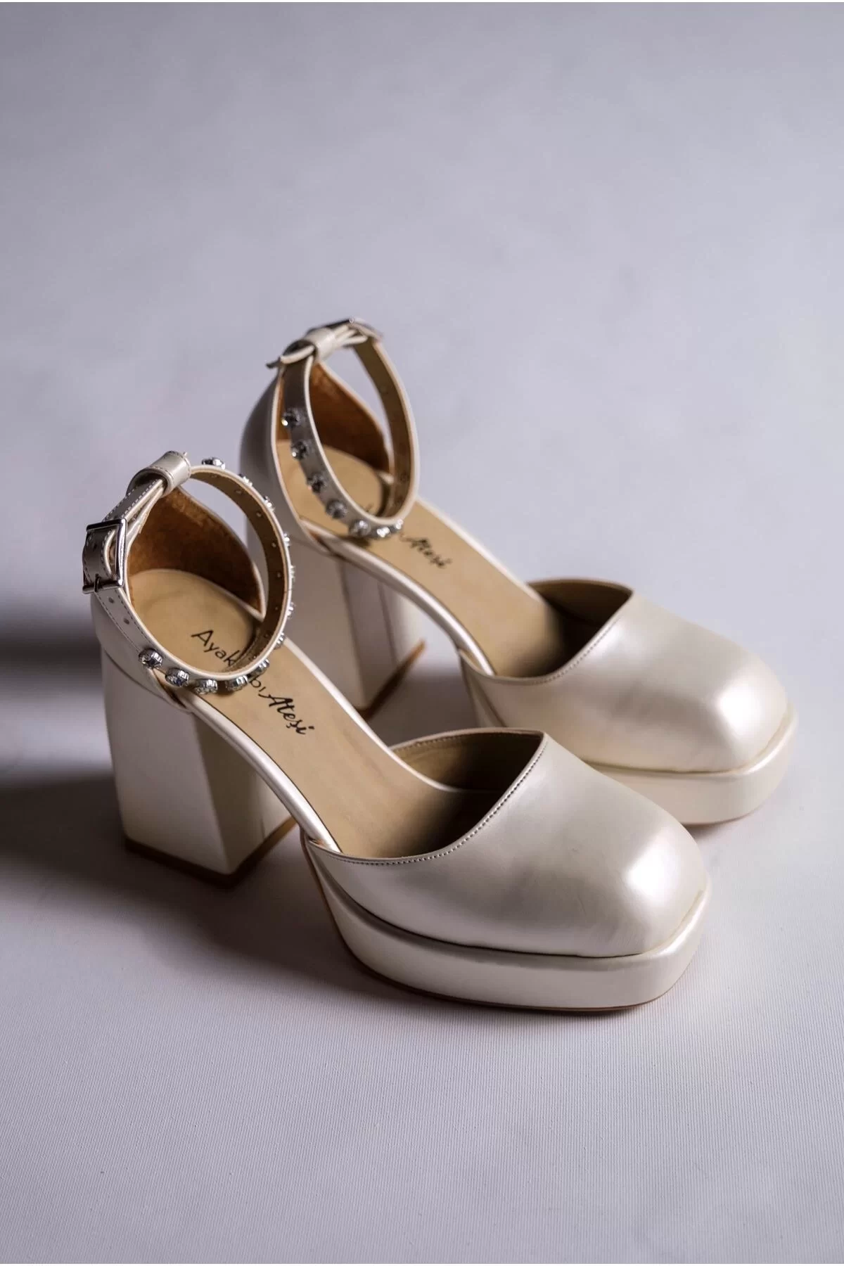 Kadın Moda Platform Tasarım Toka Detaylı Orta Topuklu Ayakkabı Şık ve Zarif Abiye Ayakkabı