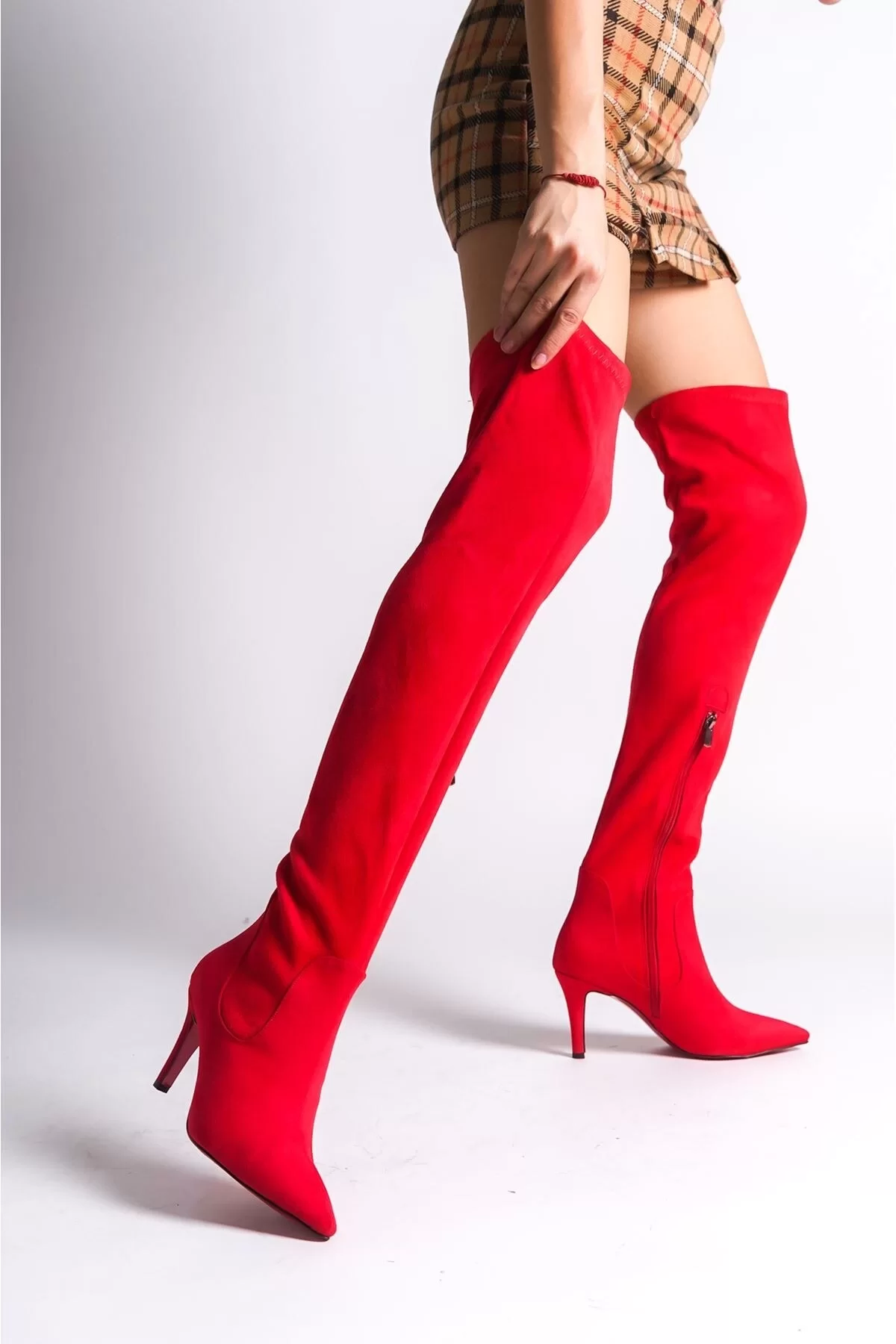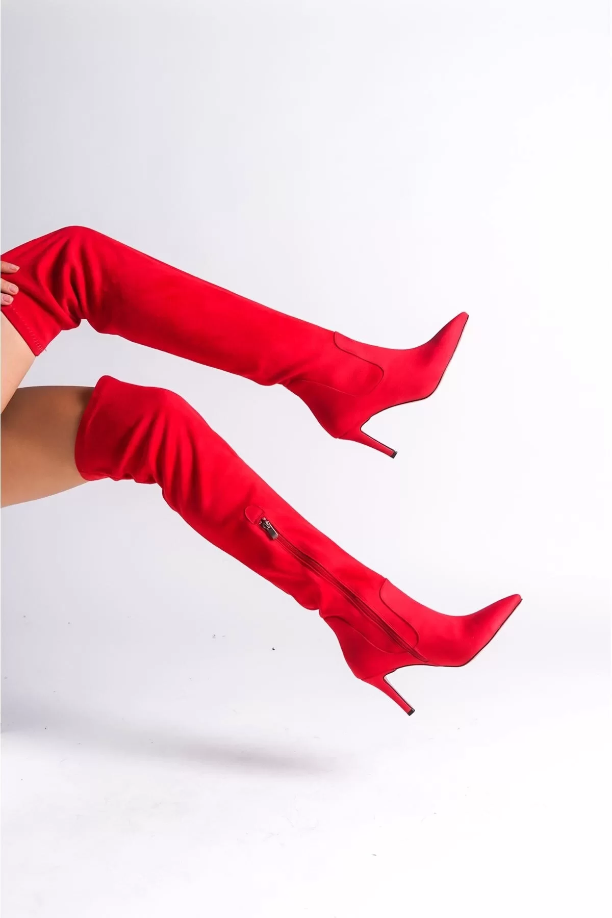 Kadın Moda Yarım Fermuarlı Diz Üstü Streç Çizme Şık ve Zarif Abiye Ayakkabı