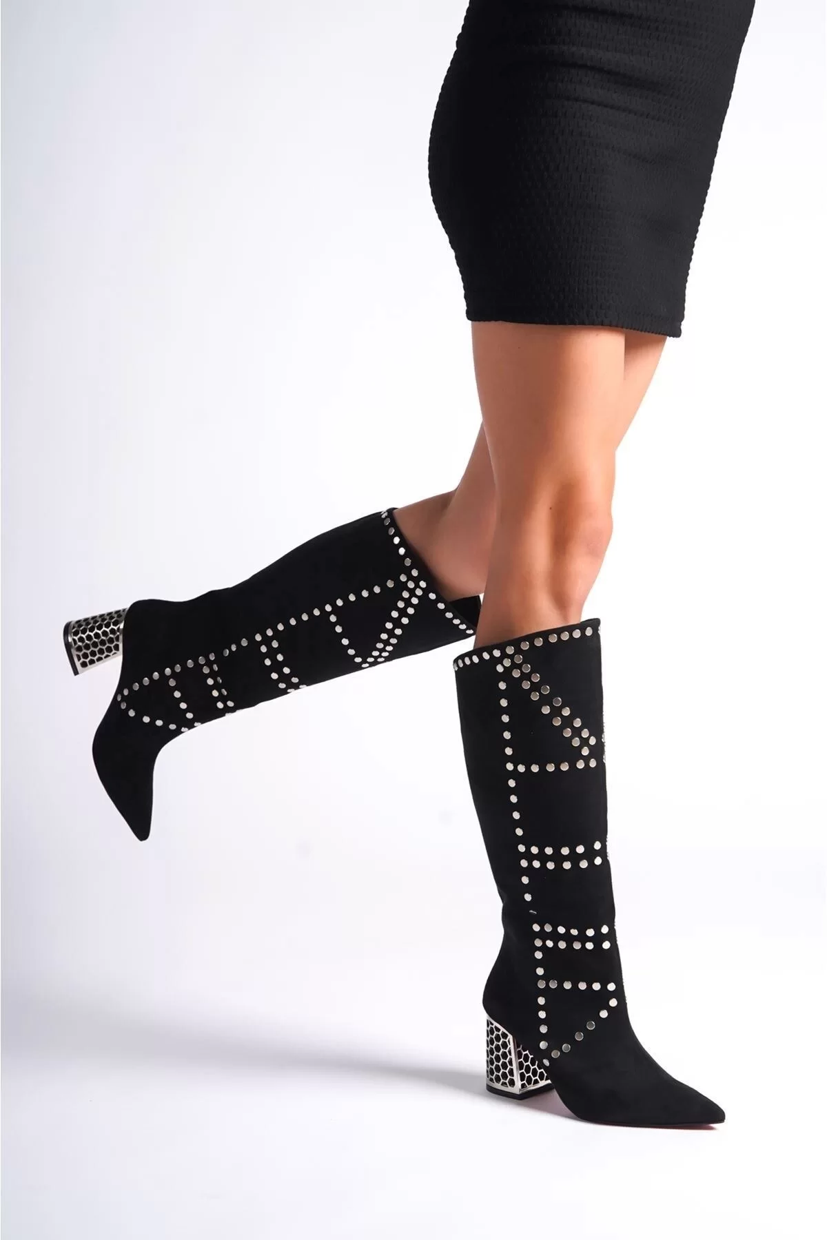 Kadın Moda Zımbalı Tasarım Kısa Topuklu Çizme Şık ve Zarif Abiye Ayakkabı