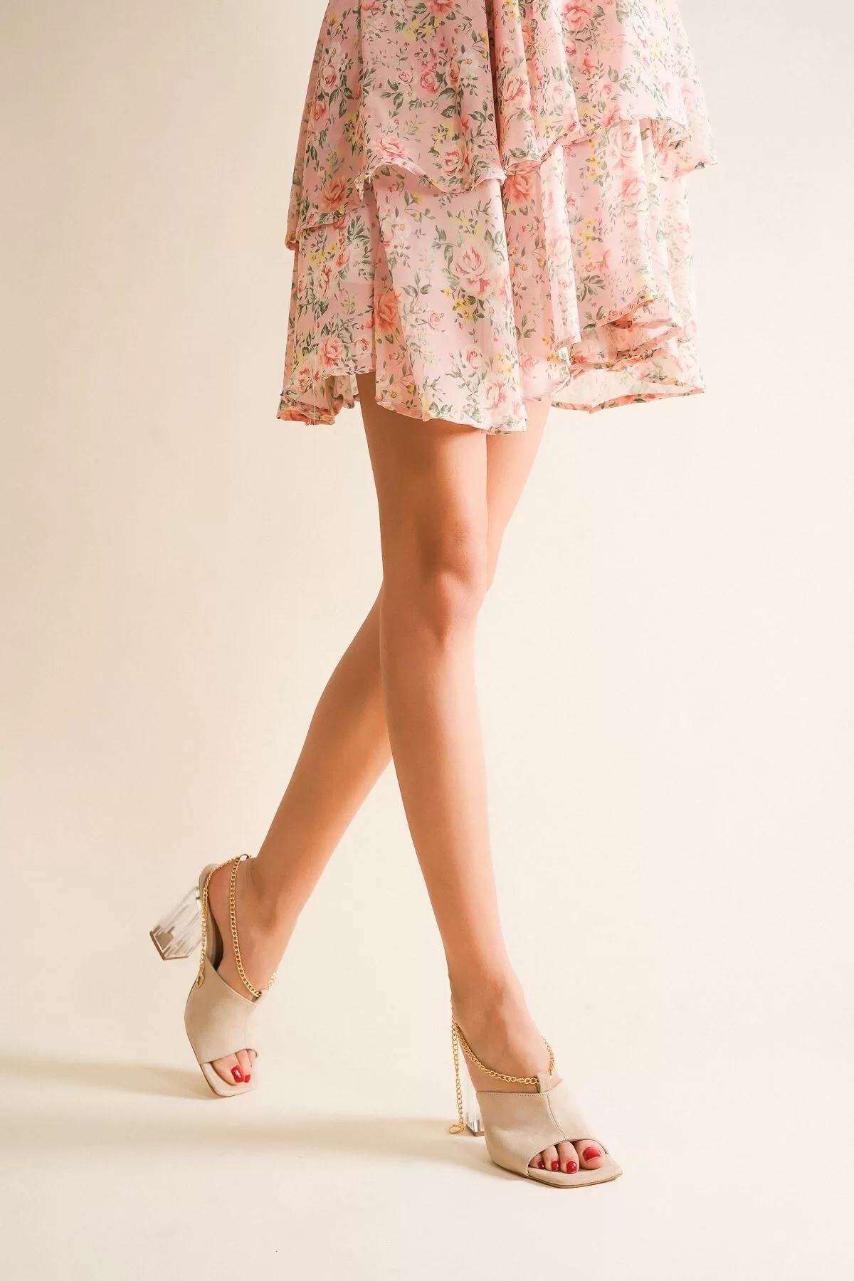 Kadın Moda Zincir Detaylı Şeffaf Topuklu Terlik Clevna Şık ve Zarif Abiye Ayakkabı