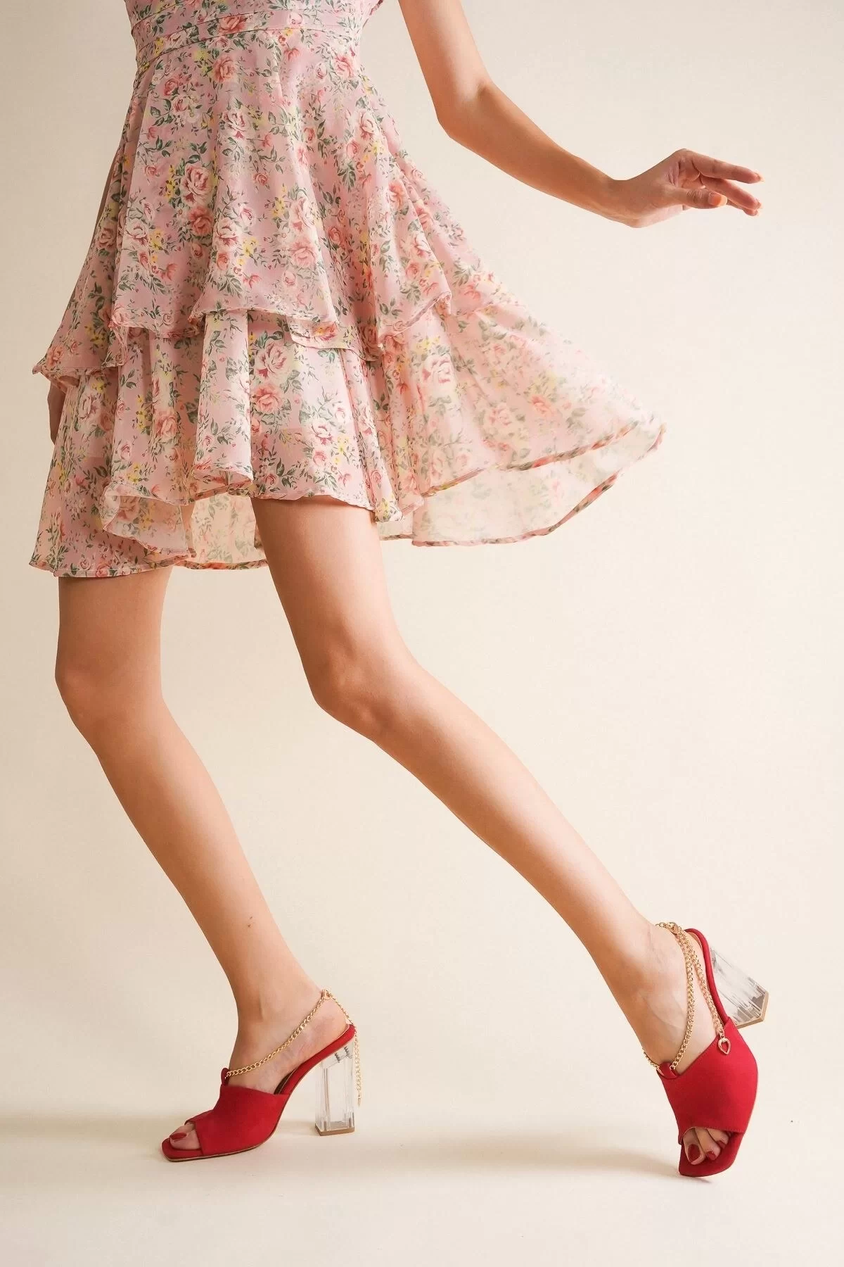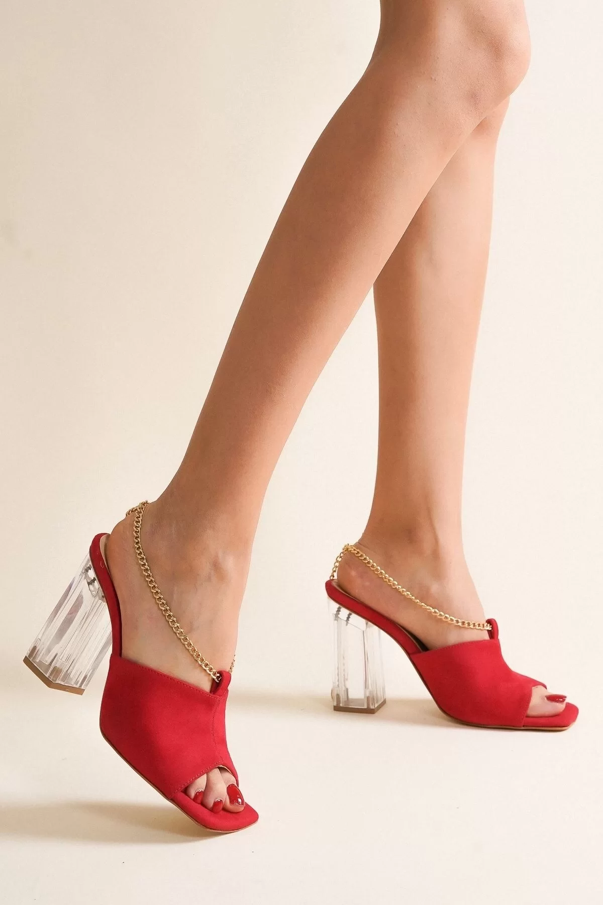 Kadın Moda Zincir Detaylı Şeffaf Topuklu Terlik Clevna Şık ve Zarif Abiye Ayakkabı