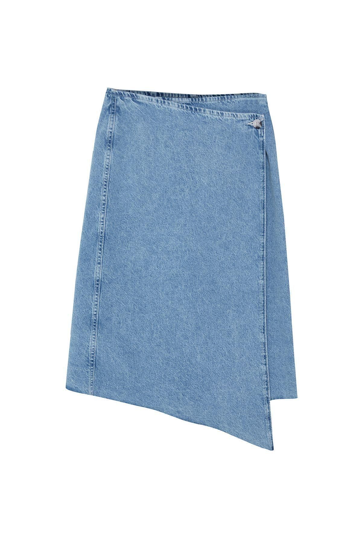 Moda Regular Düz Desen Günlük More Sustainable Püsküllü Midi Denim Etek