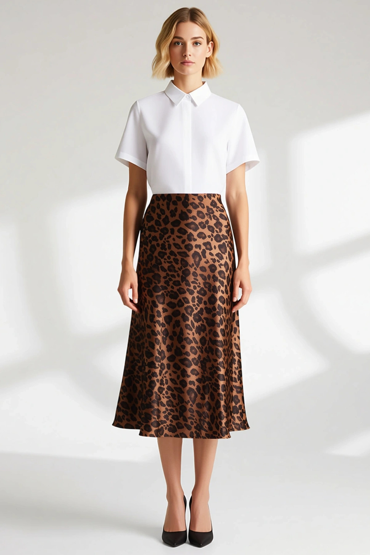 Moda Regular Animal Desen Resmi Midi Boy Premium Yüksek Kalite Hayvan Desenli Saten Midi Dokuma Etek