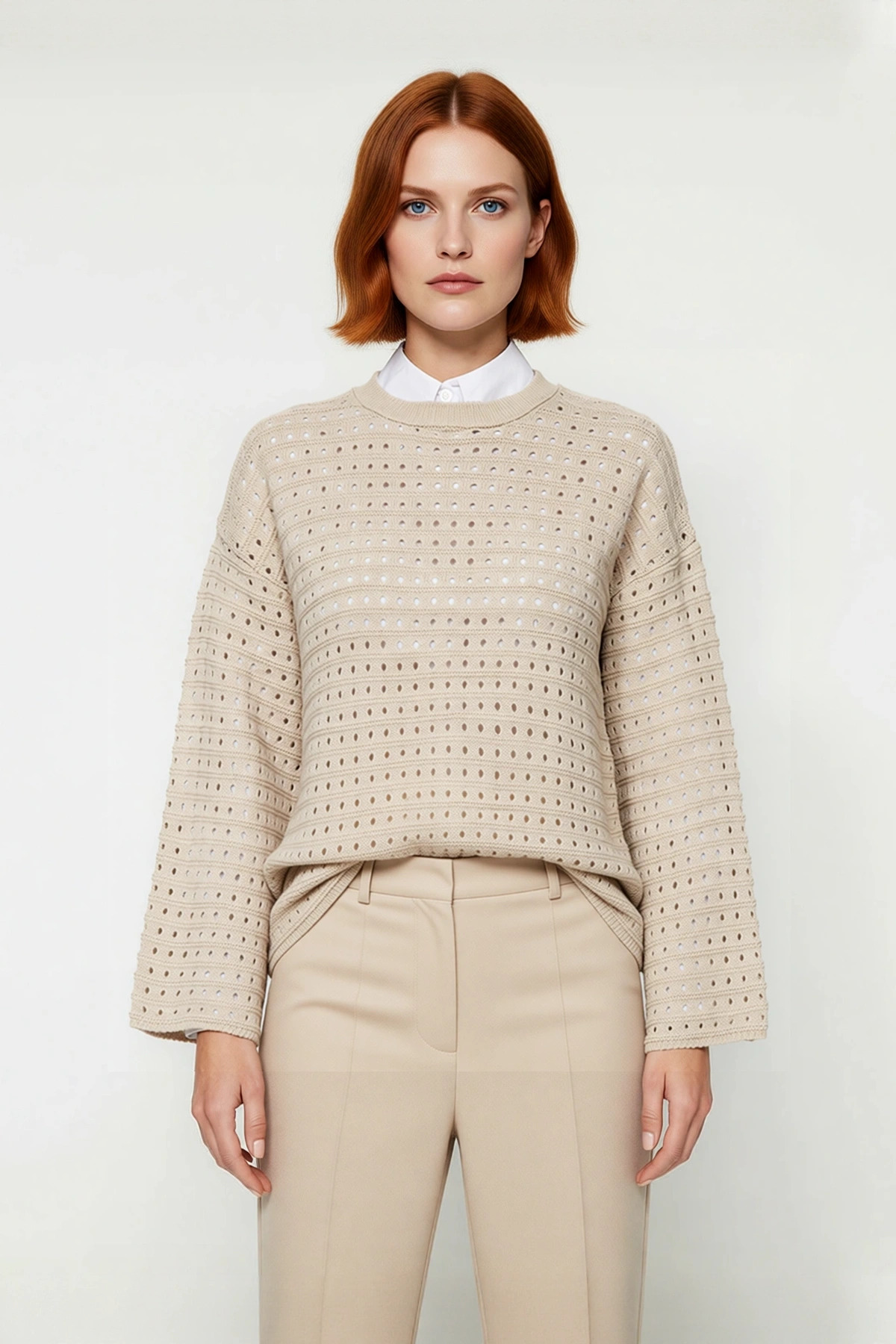 Kadın Modern Tarz Rahat Uzun Bisiklet Yaka Ajurlu Kol Regular Triko Örgü Kazak – Ürünümüz hem günlük şıklık hem de rahatlık arayanlar için mükemmel bir seçenek. Yumuşak triko kumaşı, dört mevsim rahatlıkla kullanılabilir ve modern kesimiyle her tarza uyum sağlar. Hem kazak hem de hırka olarak kullanılabilen bu çok yönlü tasarım, V yakası ve düğmeli ön kısmı ile zarif bir görünüm sunar. Katmanlı kombinler için ideal olan bu hırka, serin havalarda üzerinize alabileceğiniz şık bir tamamlayıcıdır. – Model Bilgisi: Modelin Ölçüleri: Boy: 181cm(511) Göğüs: 84cm(33in) Bel: 61cm(24in) Kalça: 89cm(35in). – Mankenin üzerindeki ürün S368 bedendir.. – Materyal Bileşeni: 100% Akrilik. – Kumaş Tipi: Triko. – Model Ön Boyu: 75,0 cm. – Ürününüzü daha uzun süreli kullanabilmeniz ve ürününüze uygun bakım yapabilmeniz için lütfen aşağıda belirtilen yıkama talimatına uyunuz.. – Stüdyo çekimlerinde renkler ışık farklılığından dolayı değişiklik gösterebilir.. – – Materyal:Akrilik – Kalıp:Regular – Yaka Tipi:Bisiklet Yaka – Kumaş Tipi:Triko – Kol Tipi:İspanyol Kol – Desen:Ajurlu – Renk:Lacivert – Koleksiyon:Tesettür Giyim – Kalınlık:Orta – Kol Boyu:Uzun – Dokuma Tipi:Ajur – Siluet:Basic – Boy:Regular – Persona:Cool & Comfort – Ortam:Casual/Günlük – Sürdürülebilirlik Detayı:Hayır – Materyal Bileşeni:100% Akrilik – Yıkama Talimatı:T41 – Paket İçeriği:Tekli – Yaş:Tüm Yaş Grupları –