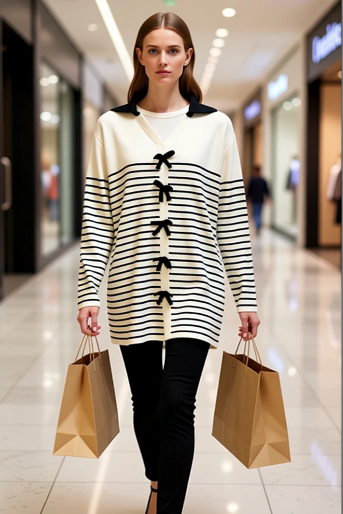 Kadın Modern Tarz Rahat Uzun Polo Yaka Çizgili Kol Regular Triko Kazak – Ürünümüz hem günlük şıklık hem de rahatlık arayanlar için mükemmel bir seçenek. Yumuşak triko kumaşı, dört mevsim rahatlıkla kullanılabilir ve modern kesimiyle her tarza uyum sağlar. Hem kazak hem de hırka olarak kullanılabilen bu çok yönlü tasarım, V yakası ve düğmeli ön kısmı ile zarif bir görünüm sunar. Katmanlı kombinler için ideal olan bu hırka, serin havalarda üzerinize alabileceğiniz şık bir tamamlayıcıdır. – Model Bilgisi: Modelin Ölçüleri: Boy: 172cm(58) Göğüs: 83cm(32in) Bel: 58cm(22in) Kalça: 87cm(34in). – Mankenin üzerindeki ürün S368 bedendir.. – Materyal Bileşeni: 100% Akrilik. – Kumaş Tipi: Triko. – Model Ön Boyu: 75,0 cm. – Ürününüzü daha uzun süreli kullanabilmeniz ve ürününüze uygun bakım yapabilmeniz için lütfen aşağıda belirtilen yıkama talimatına uyunuz.. – Stüdyo çekimlerinde renkler ışık farklılığından dolayı değişiklik gösterebilir.. – – Kalıp:Fitted – Kumaş Tipi:Triko – Kol Tipi:Standart Kol – Desen:Çizgili – Renk:Siyah – Yaka Tipi:Polo Yaka – Kol Boyu:Uzun – Ortam:Casual/Günlük – Dokuma Tipi:Tek Plaka – Boy:Regular – Siluet:Basic – Sürdürülebilirlik Detayı:Hayır – Materyal Bileşeni:100% Akrilik – Yıkama Talimatı:T41 – Yaş:Tüm Yaş Grupları –