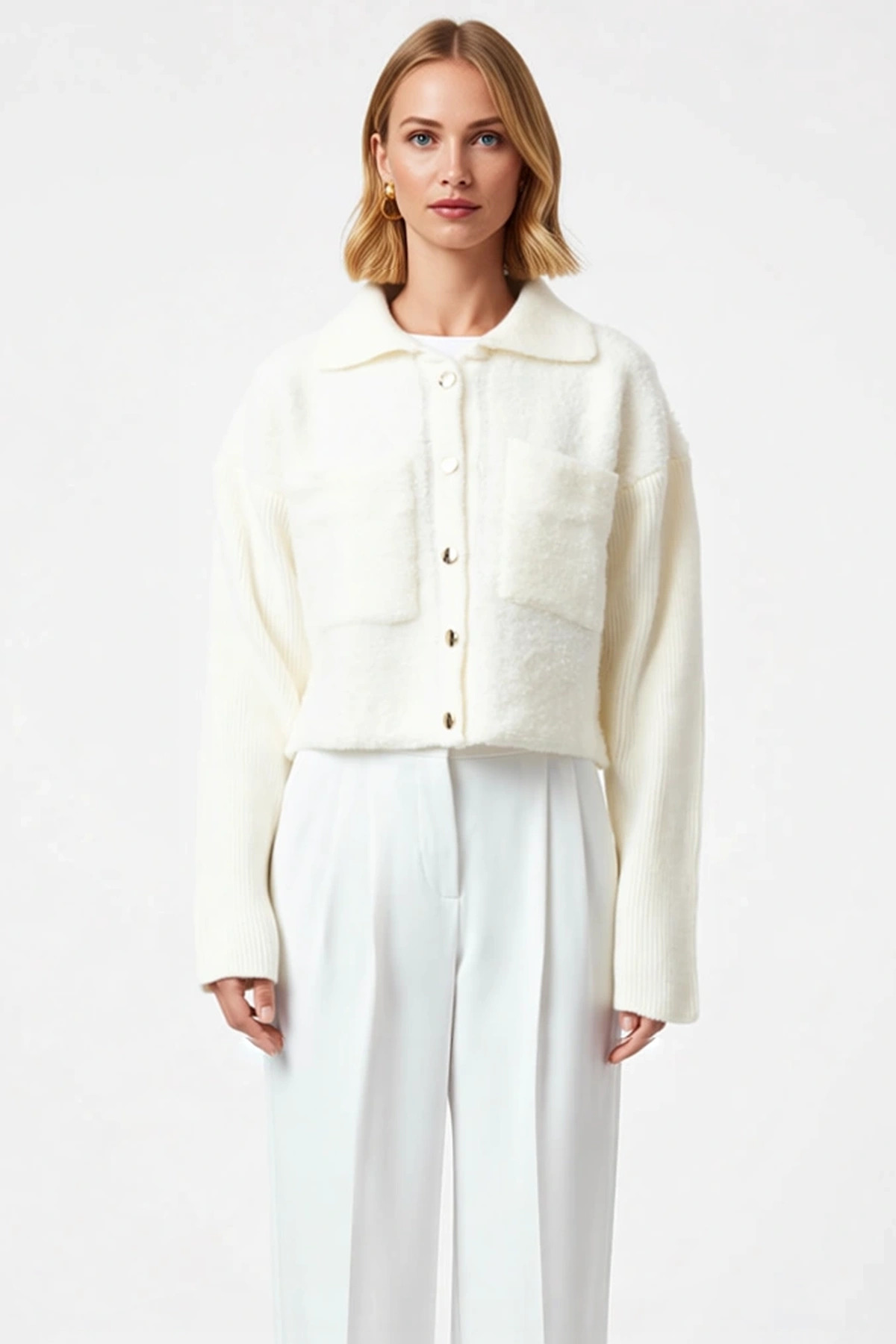 Kadın Modern Tarz Regular Polo Yaka Regular Triko Hırka – Ürünümüz hem şıklık hem de rahatlık arayan kadınlar için ideal bir tercihtir. Yumuşak triko dokusu sayesinde gün boyu konfor sağlar, vücudu saran modern kesimi ile zarif bir görünüm sunar. Düğmeli ön kısmı sayesinde katmanlı kombinler için mükemmel bir seçenek olan bu hırka, serin havalarda şıklığınızdan ödün vermeden sizi sıcak tutar. Farklı renk seçenekleriyle her kombine uyum sağlayarak tarzınıza uygun bir dokunuş ekler. – Model Bilgisi: Modelin Ölçüleri: Boy: 175cm(59) Göğüs: 81cm(31in) Bel: 60cm(23in) Kalça: 88cm(34in). – Mankenin üzerindeki ürün S368 bedendir.. – Materyal Bileşeni: 73% Akrilik,27% Polyester. – Kumaş Tipi: Triko. – Model Ön Boyu: 50,0 cm. – Ürününüzü daha uzun süreli kullanabilmeniz ve ürününüze uygun bakım yapabilmeniz için lütfen aşağıda belirtilen yıkama talimatına uyunuz.. – Stüdyo çekimlerinde renkler ışık farklılığından dolayı değişiklik gösterebilir.. – – Kalıp:Regular – Yaka Tipi:Polo Yaka – Kol Tipi:Standart Kol – Desen:Düz – Kumaş Tipi:Triko – Renk:Ekru – Ürün Tipi:Düz – Kol Boyu:Uzun – Kalınlık:Kalın – Boy:Regular – Siluet:Basic – Ortam:Casual/Günlük – Persona:Cool & Comfort – Sürdürülebilirlik Detayı:Hayır – Dokuma Tipi:Tek Plaka – Materyal Bileşeni:73% Akrilik, ,27% Polyester – Yıkama Talimatı:T41 – Yaş:Tüm Yaş Grupları –