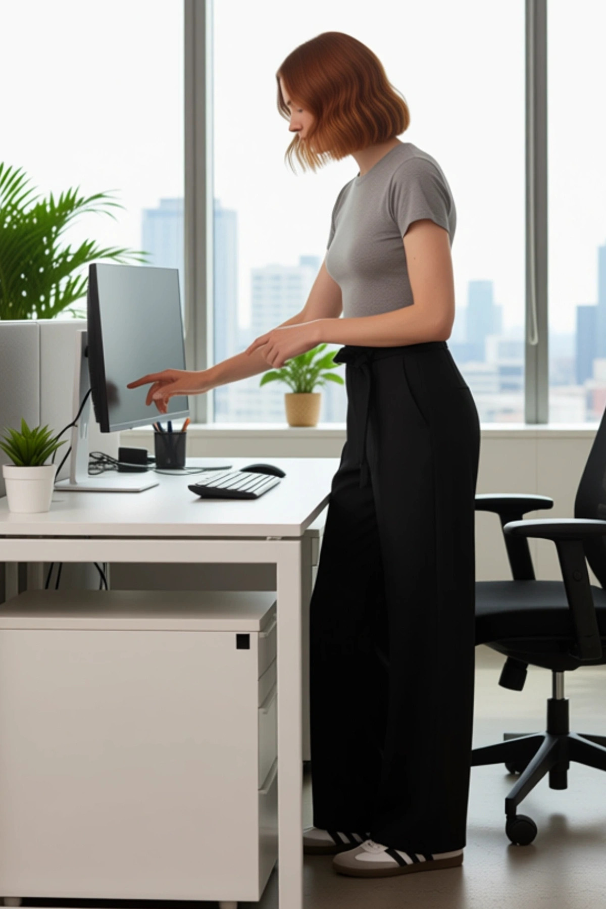 Modern kadının gardırobuna şıklık ve konfor katacak bu siyah pantolon, dikkat çekici detaylarıyla öne çıkıyor. Düz kesim kalıbı, vücudu saran ancak sıkmayan yapısıyla rahat bir kullanım sunarken, geniş paça detayı hareket özgürlüğünü artırır. %64 polyester, %34 viskoz ve %2 elastan karışımı, kumaşa hem dayanıklılık hem de esneklik kazandırır. Bu sayede pantolon, gün boyu formunu korur ve size maksimum konfor sağlar. Siyah rengi, her türlü üst giyim ürünüyle kolayca uyum sağlayarak sayısız kombin imkanı sunar. Düz desenli bu pantolon, casual ve günlük kullanıma uygun olup, cool ve comfort persona ile öne çıkar. Kuşak detayı, bel hattını vurgulayarak zarif bir siluet oluşturur ve pantolona sofistike bir dokunuş ekler. Nervürlü kumaş dokusu ise pantolona derinlik ve estetik bir görünüm kazandırır. Bu pantolonun en belirgin özelliklerinden biri, beldeki çıkarılabilir veya sabit kuşak detayıdır. Bu kuşak, pantolona hem şık bir görünüm katar hem de bel ölçüsüne göre ayarlanabilme imkanı sunar. Düz kesim ve geniş paça, rahat bir hareket alanı sağlarken, aynı zamanda modern ve şık bir duruş sergiler. Nervürlü kumaş dokusu, pantolona dokusal bir zenginlik katarak sıradanlıktan uzaklaştırır. Materyal bileşimi olan %64 polyester, %34 viskoz ve %2 elastan, pantolonun hem nefes alabilirliğini hem de dayanıklılığını garanti eder. Elastan sayesinde pantolon, vücut hatlarına uyum sağlayarak gün boyu konforlu bir deneyim sunar. Bu pantolon, hem şık görünmek hem de gün boyu rahat hissetmek isteyen kadınlar için idealdir. Bu pantolon, özellikle sonbahar ve kış aylarında rahatlıkla kullanılabilir. Kalın dokusu ve materyal yapısı, soğuk havalarda sıcak tutmaya yardımcı olur. KOMBİN ÖNERİSİ olarak, bu pantolonu basic bir beyaz tişört ve spor ayakkabılarla kombinleyerek rahat bir günlük stil yaratabilirsiniz. Daha şık bir görünüm için, ipek bir bluz ve topuklu botlarla tamamlayabilirsiniz. Deri bir ceket veya şık bir kazak ile de harika bir uyum yakalayacaktır. Pantolonun bakımı için, ürün üzerindeki yıkama talimatlarına dikkat edilmesi önemlidir. Bu pantolon, her kadının gardırobunda bulunması gereken çok yönlü ve şık bir parçadır.