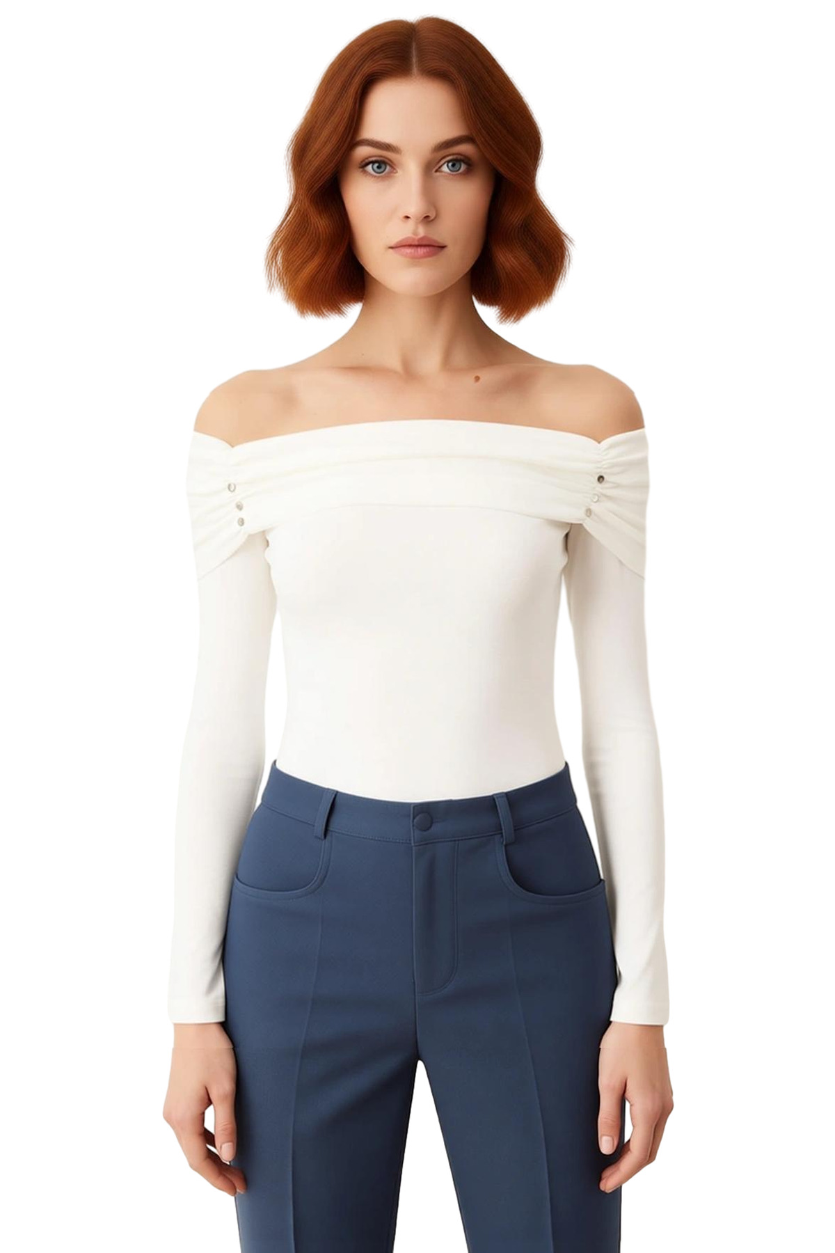 Kadınlar için özel olarak tasarlanmış bu üst, modern ve şık bir görünüm sunar. Off-shoulder (omuzları açıkta bırakan) yaka detayı, zarif bir siluet oluştururken, vücuda oturan kesimi ile vücut hatlarını güzelce vurgular. Uzun kollu tasarımı, soğuk havalarda dahi konforlu bir kullanım sağlar. Fitilli örme kumaş, hem dokusal bir zenginlik katar hem de esnekliği sayesinde hareket özgürlüğü sunar. Ürünün üzerindeki özenle yerleştirilmiş aksesuar detayları, sıradanlıktan uzak, dikkat çekici bir stil yaratır. Bu üst, gündüz ve gece etkinliklerinde rahatlıkla kullanılabilir ve smart bir persona ile mükemmel uyum sağlar. %50 pamuk ve %50 polyester içeriği, yumuşak bir his ve dayanıklılık sunarken, viscon ribana dokuma tipi, kumaşın formunu korumasına yardımcı olur. Kış sezonu için ideal olan bu ürün, TR’de üretilmiştir. Gardırobunuzda yer açmanız gereken bu parça, farklı kombinlerle kolayca uyum sağlar. Jean pantolonlar, etekler veya şık pantolonlarla bir araya getirerek çeşitli stiller yaratabilirsiniz. Bu üst, hem günlük şıklığınızı tamamlamak hem de özel günlerinizde fark yaratmak için idealdir. Yıkama talimatlarına dikkat ederek ürünün ömrünü uzatabilirsiniz. Bu üst, stil sahibi kadınların tercihi olmaya devam edecek.