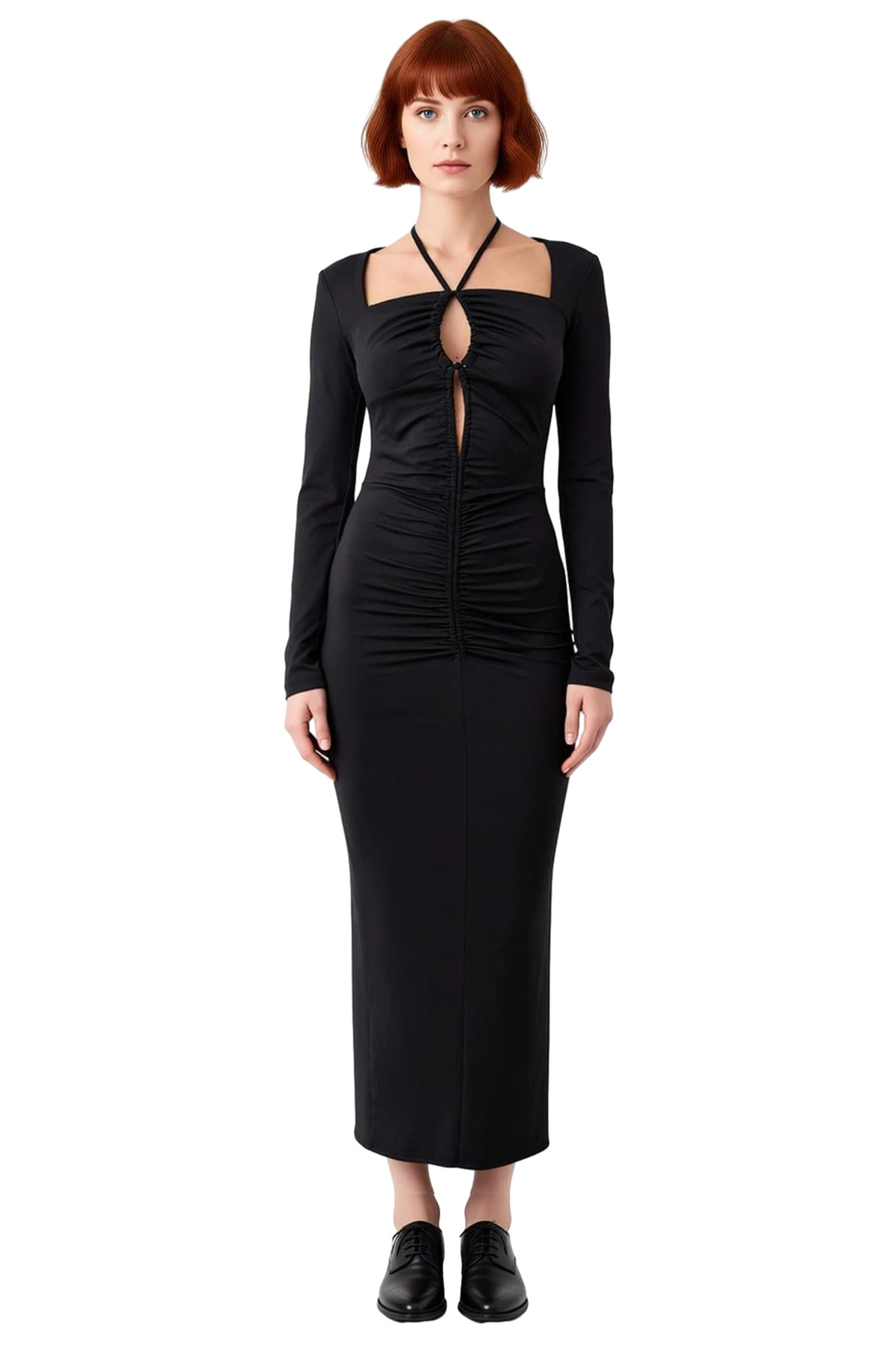 Bodycone silüeti, ince ve uzun hatlar oluşturarak her vücut tipine zarif bir duruş kazandırır. Şık topuklu ayakkabılar, abiye çantalar ve minimal takılarla tamamlayarak kokteyl partileri, mezuniyet törenleri veya özel kutlamalar gibi etkinliklerde göz kamaştırabilirsiniz. Uzun kollu ve maxi boyu ile sonbahar, kış ve ilkbahar aylarının serin akşamlarında veya özel davetlerde şıklığınızdan ödün vermeden kullanabilirsiniz.