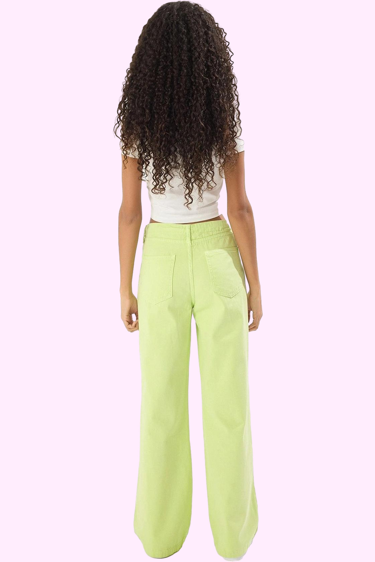 Rahatlığı ve şıklığı bir araya getiren, bu yeşil denim pantolon ile tanışın! %100 pamuk denim kumaştan üretilen pantolonumuz, yaz aylarında bile gün boyu konfor sunar. Nefes alabilen yapısı ve yumuşak dokusuyla teninize nazikçe dokunur. Normal bel yüksekliği ve geniş paçası ile rahatlığı ve özgürlüğü bir arada yaşayın. Düz deseni ve şık yeşili ile her kombininize uyum sağlar, tarzınızı tamamlayan bir parça olur.
