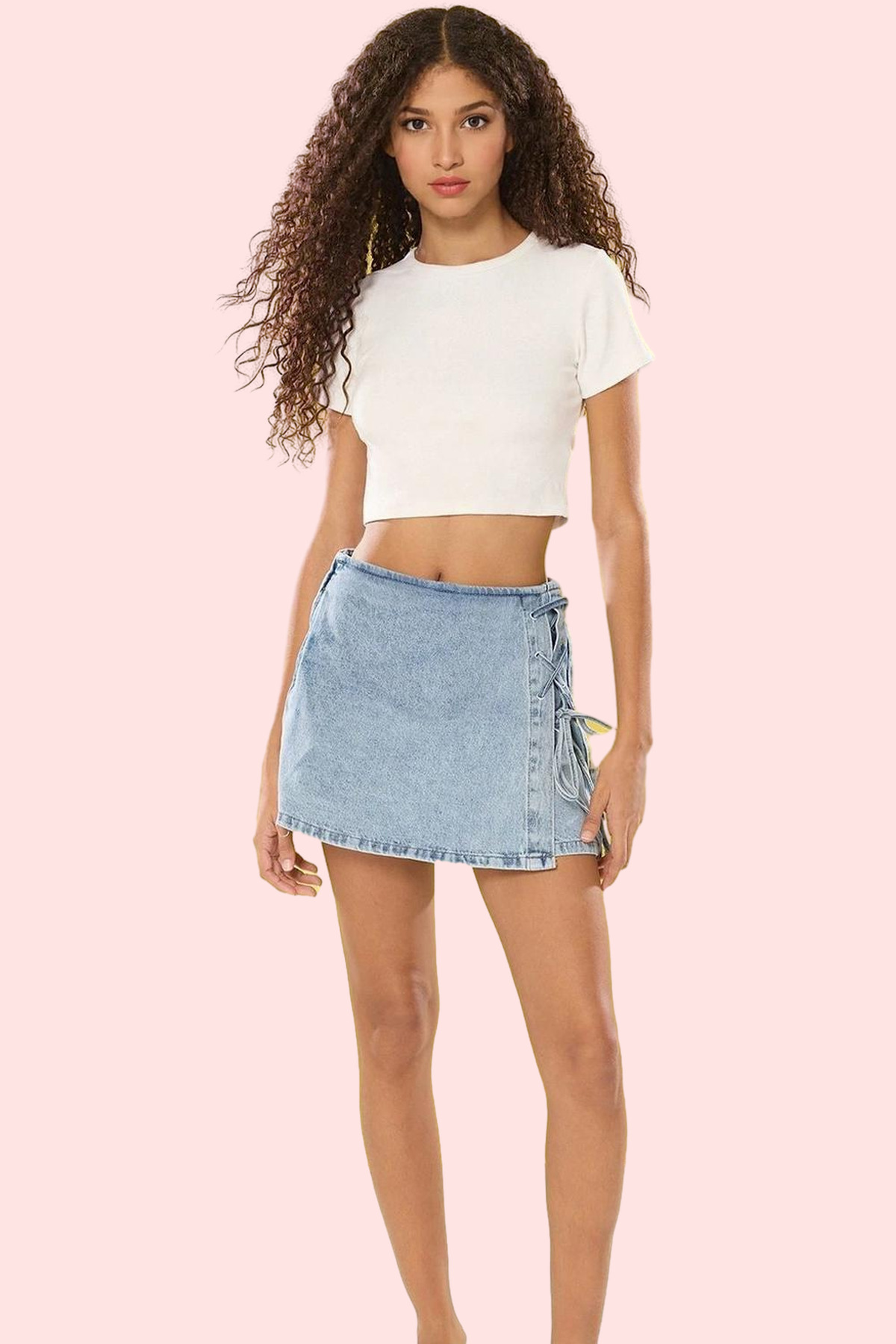 Denim kumaşın sağlam ve dayanıklı yapısı, uzun süreli kullanım imkanı sunar. Yumuşak dokusuyla cildinize nazik davranır ve gün boyu konfor sağlar. Yüksek bel tasarımı, vücut hatlarınızı olduğundan daha ince gösterirken, bağcıklı detay ise şık bir dokunuş katar. Kısa boyu, yaz aylarında serin kalmanıza yardımcı olur ve farklı ayakkabı modelleriyle kolayca kombinlenebilir.