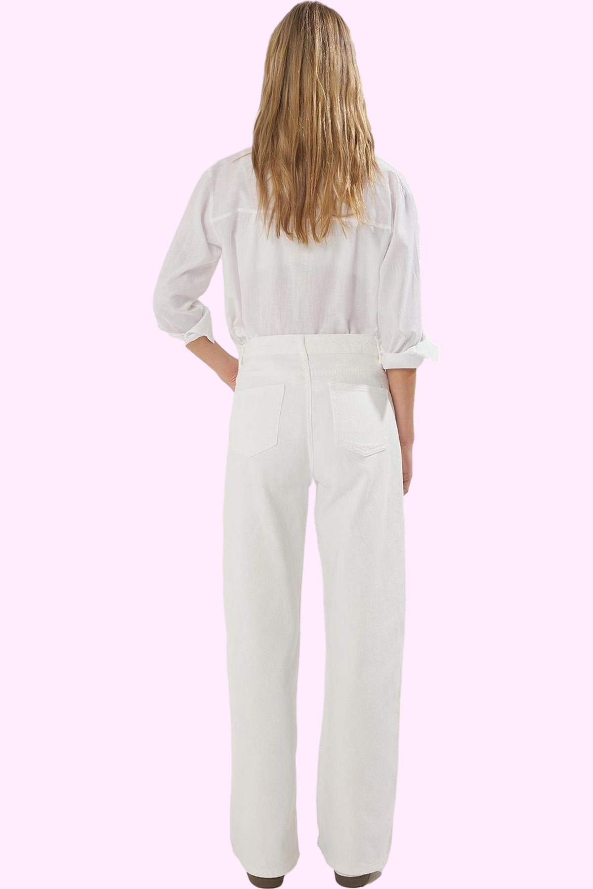 Materyal Bileşeni:100% Pamuk, Kumaş Tipi:Denim, Dokuma Tipi:Rigid, Paça Tipi:Geniş Paça, Bel:Yüksek Bel, Boy:Uzun, Renk:Beyaz, Ortam:Casual/Günlük, Desen:Düz, Yıkama Talimatı:T18, Sezon:Yaz, Menşei:TR