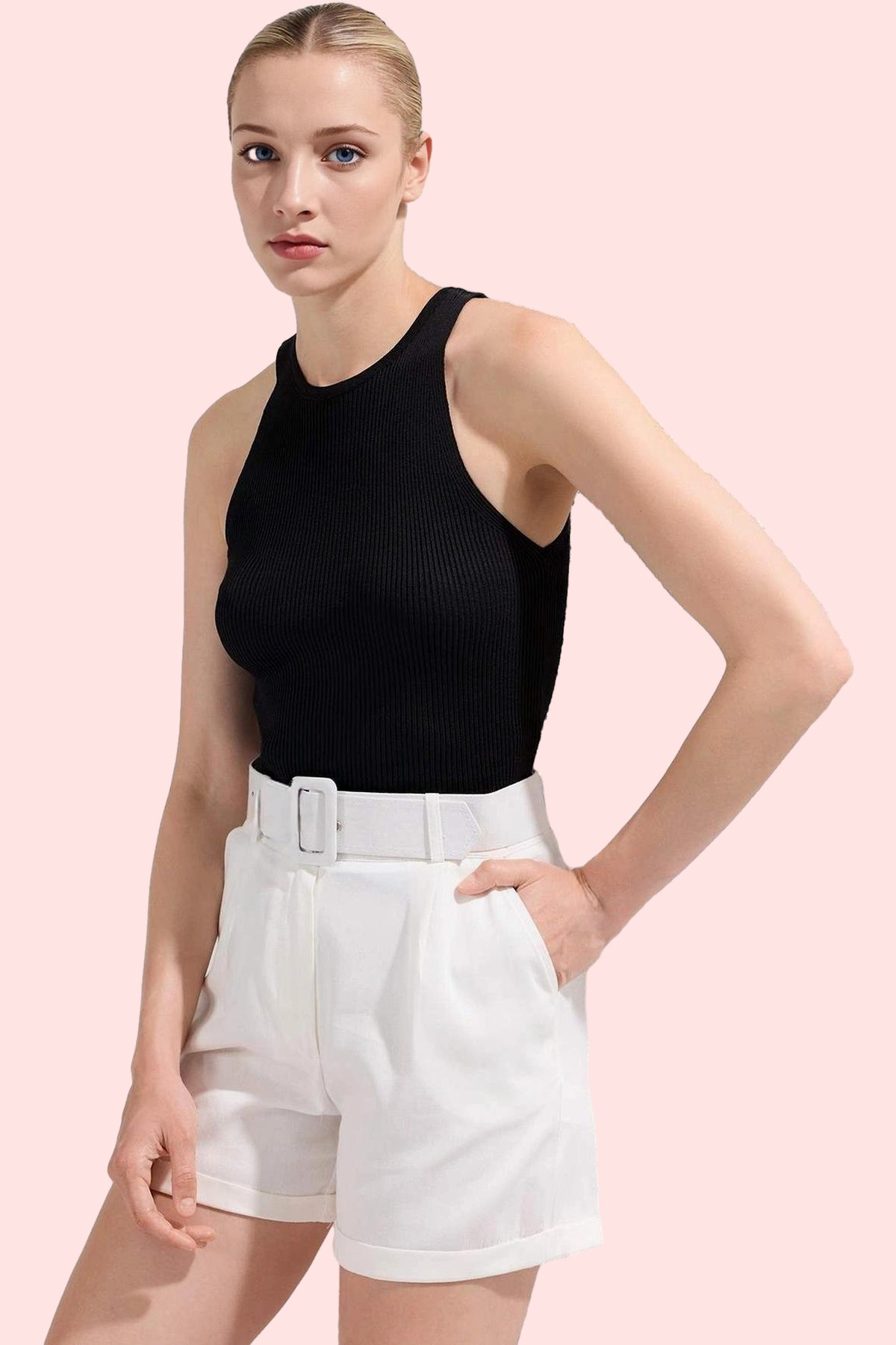Bu sezonun en trend parçası olan kadın şortumuz, %100 pamuk gabardin kumaşından üretilmiştir. Yüksek bel tasarımı ile vücudunuzu kusursuz bir şekilde sarar ve ince gösterir. Kısa boyu ve rahat kalıbı ile yaz aylarında özgürce hareket etmenizi sağlar. Çift cep detayı ile kullanışlılığı bir adım öne taşırken, düz tasarımı ile her kombini tamamlayacak mükemmel bir seçenektir. Pamuk gabardin kumaşın nefes alabilir yapısı gün boyu konfor sunar. Makinede yıkanabilir olması ise temizlik kolaylığı sağlar.