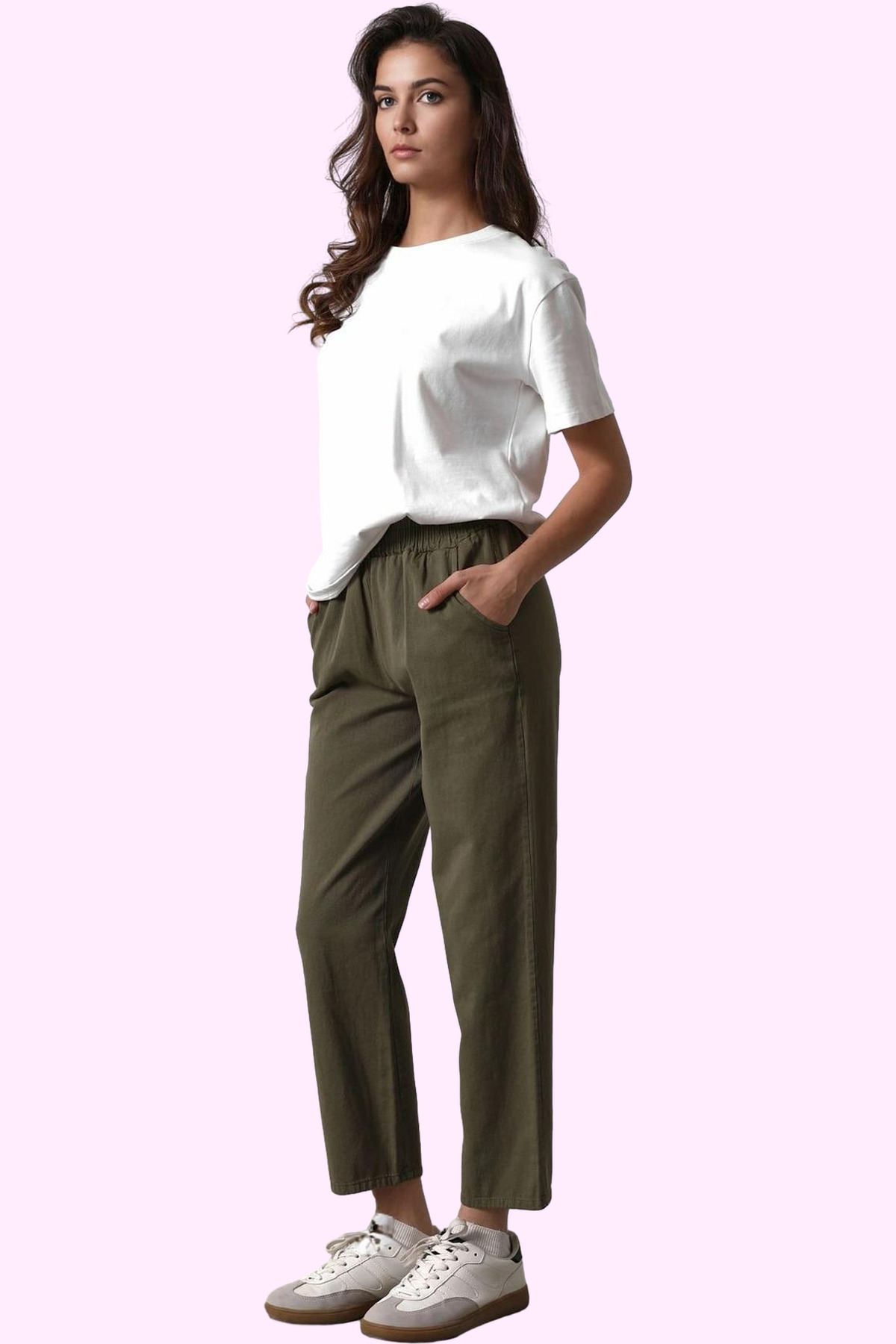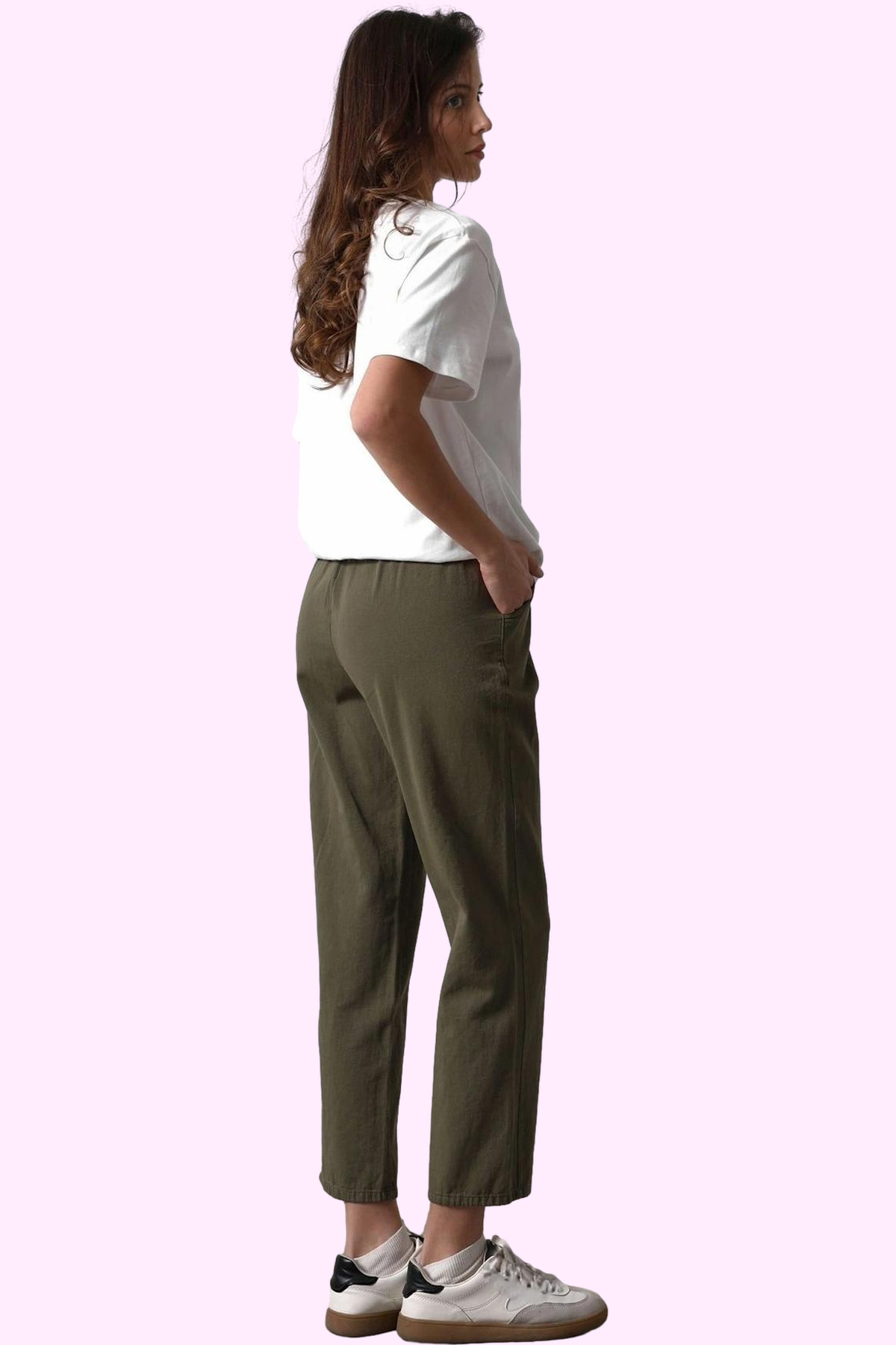 Yaz aylarının vazgeçilmez rahatlığı ve şıklığı için tasarlanan bu kadın pantolonu, gün boyu konfor sunuyor. %100 pamuk gabardin kumaştan üretilen pantolon, nefes alabilir yapısıyla sıcak havalarda serin kalmanıza yardımcı olur. Dar paçası ve jogger kalıbıyla modern bir tarz oluştururken, yüksek beli de vücut hatlarınızı zarifçe vurgular. Haki rengi ise her kombininize uyum sağlayacak çok yönlü bir seçenektir.