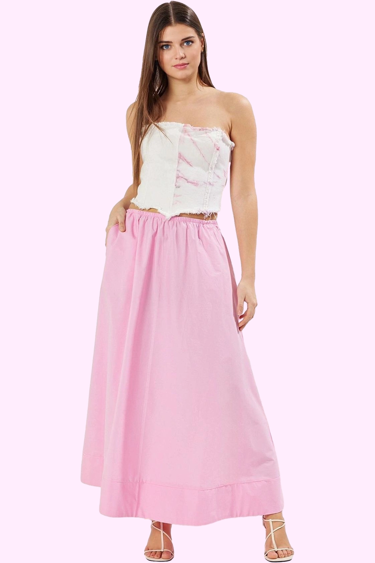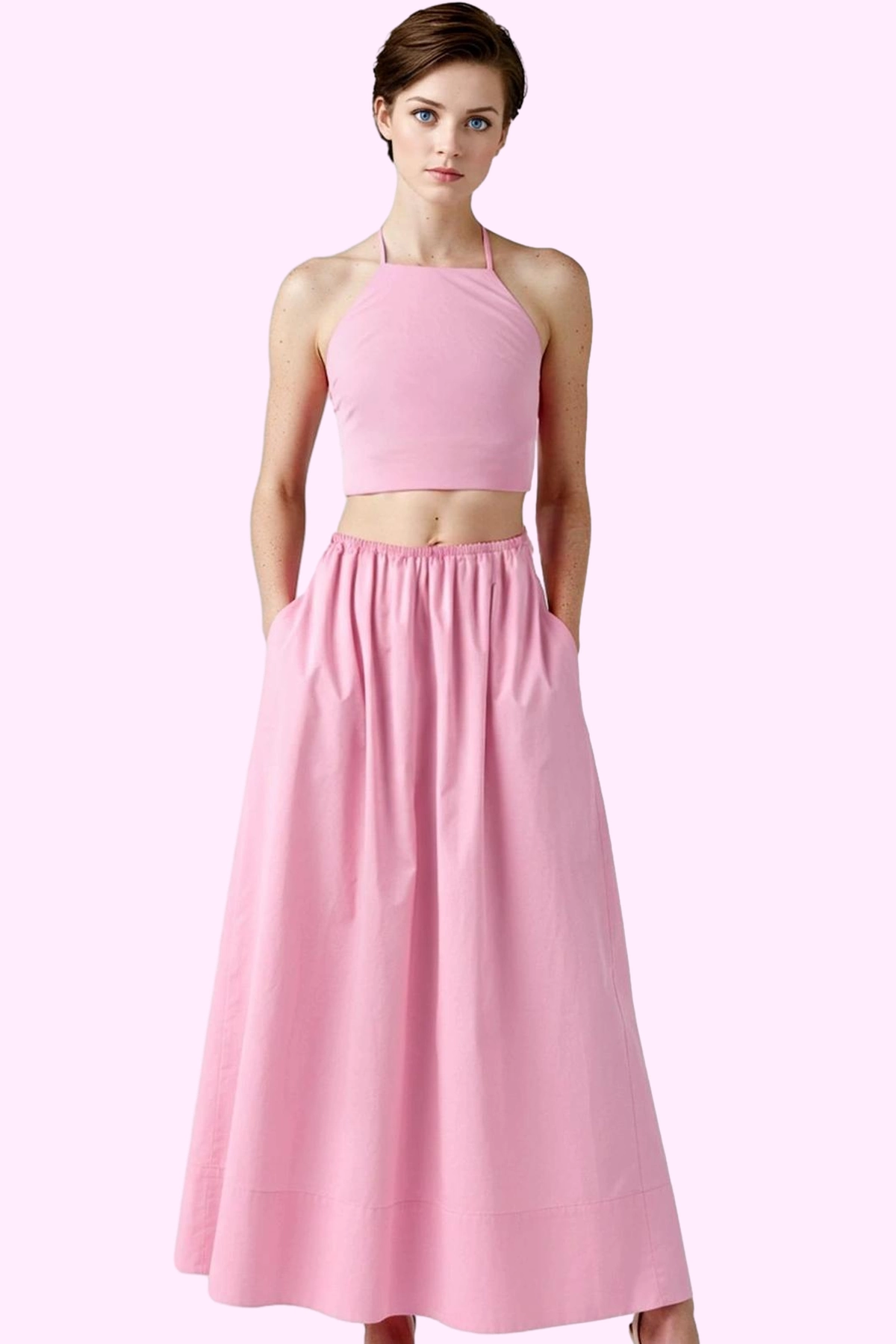 Bu şık ve rahat pembe etek, yaz aylarının vazgeçilmez parçası olacak. A-line kalıbı ve maxi boy uzunluğu ile her vücut tipine mükemmel bir uyum sağlarken, %100 pamuklu Terrycotton kumaşı gün boyu konfor sunuyor. Trend tasarımı ile tarzınıza modern bir dokunuş katacak. Günlük kullanım için ideal olan bu etek, aynı zamanda özel günlerinizde de şık bir görünüm sağlayabilir.