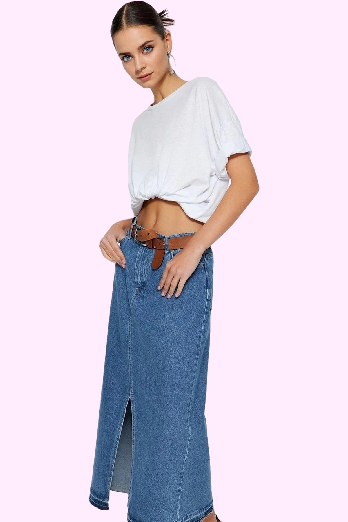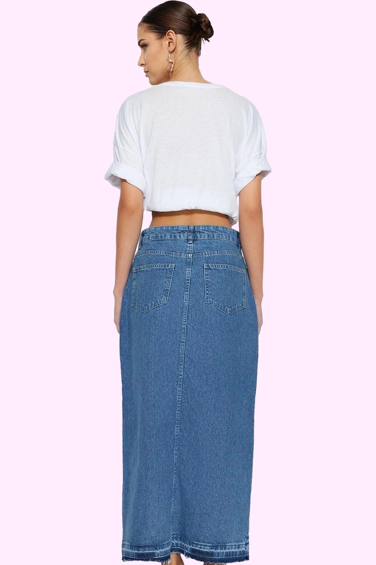Günlük stilinizi bir üst seviyeye taşıyacak, şık ve rahat bir maxi etek arıyorsanız, doğru yerdesiniz! Bu %100 pamuklu denim etek, hem günlük kullanım için ideal hem de özel günlerinizde şık bir görünüm yakalamanızı sağlayacak mükemmel bir seçenek. A-line kesimi sayesinde vücudunuzu mükemmel bir şekilde sarar ve her vücut tipine uyum sağlar. Yırtmaç detayı ile hem modern bir görünüm sunar hem de hareket özgürlüğünüzü kısıtlamaz. Kemerle birlikte gelen etek, belinizi ince göstererek silüetinize vurgu yapar. Cepsiz tasarımı sayesinde minimal ve şık bir görünüm elde edersiniz. Dayanıklı ve kaliteli kumaşıyla uzun yıllar boyunca gardrobunuzun en sevdiğiniz parçası olacaktır.
