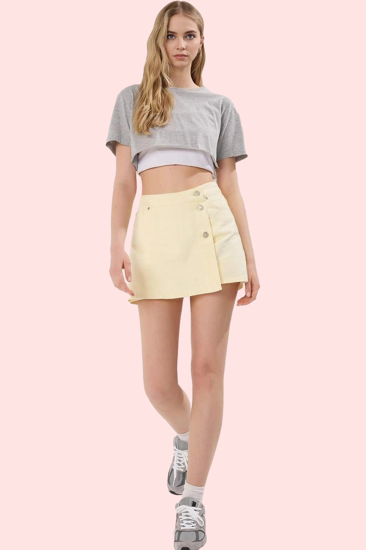 Rahatlığı ve şıklığı bir arada arayan kadınlar için özel olarak tasarlanan bu denim şort etek, yaz aylarının en gözde parçalarından biri olmaya aday. %100 pamuktan üretilen kumaşıyla gün boyu konfor sunarken, parça boya tekniğiyle elde edilen benzersiz deseni, tarzınıza modern ve dinamik bir hava katıyor. Yüksek bel kesimi, vücut hatlarınızı zarifçe ortaya koyarken, boru paça detayı ise şık ve modern bir görünüm sağlıyor. Hem günlük yaşamda hem de özel günlerde rahatlıkla kullanabileceğiniz bu çok yönlü parça, gardrobunuzun yeni favorisi olacak.