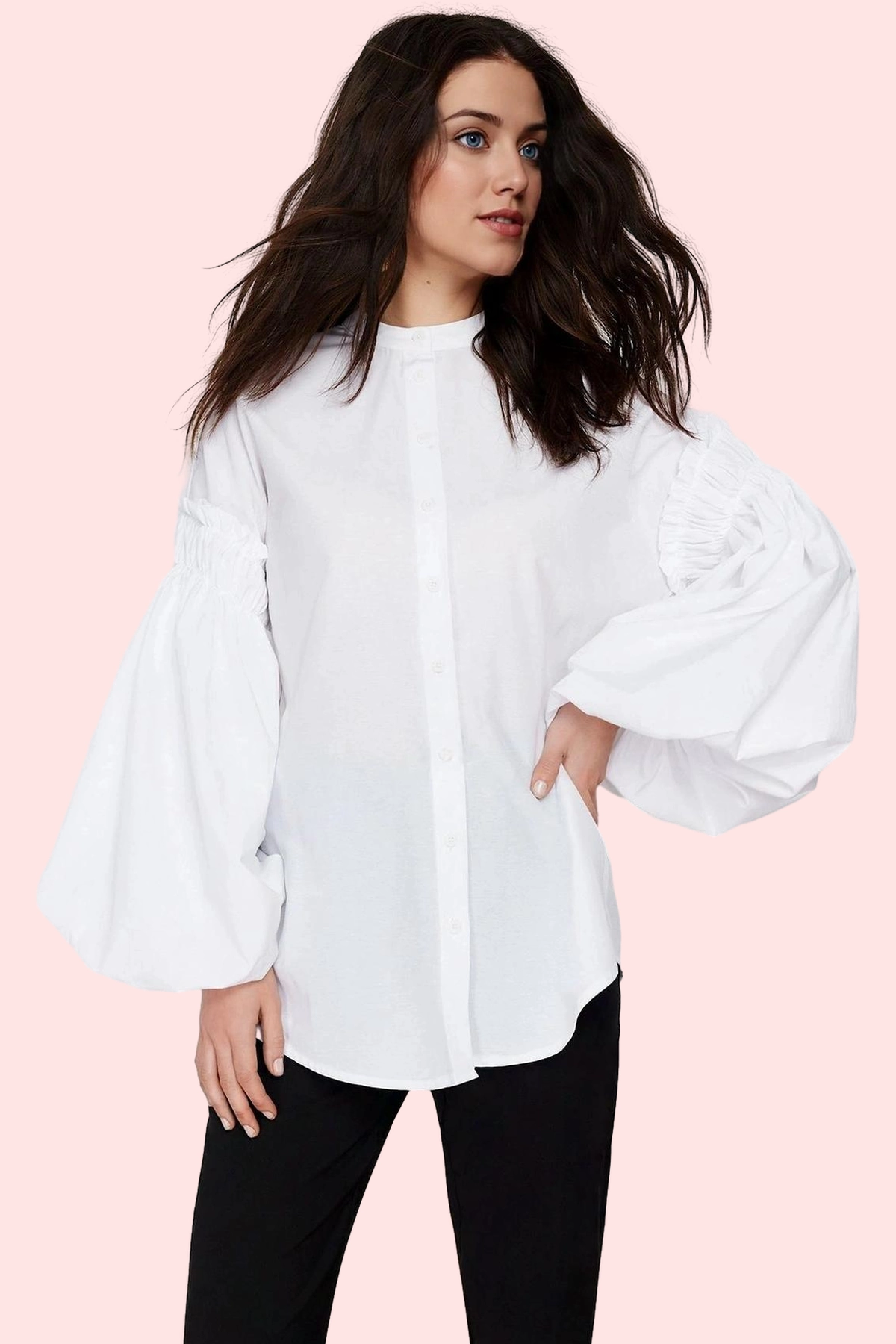 Kadın Pamuklu Dokuma Gömlek Tunik Hakim Yaka Uzun Kollu Günlük Kullanım Yaz Aylarının Vazgeçilmezi