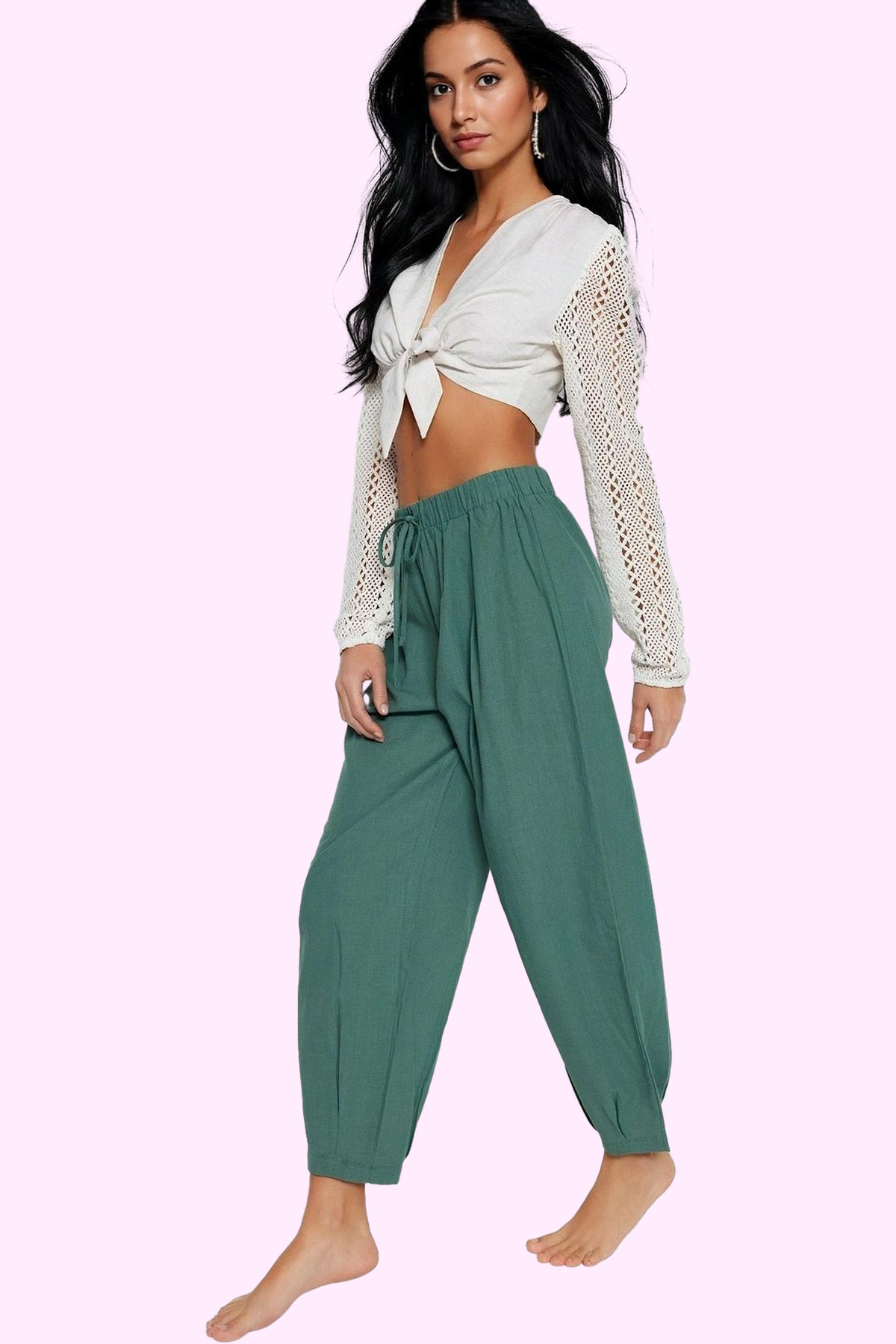 Rahatlığı ve şıklığı bir arada arayan kadınlar için mükemmel bir seçim olan bu %100 pamuklu haki pantolon, yaz aylarının keyfini çıkarmanız için tasarlandı. Yüksek bel ve şalvar kesimi ile vücudunuza mükemmel otururken, nefes alan pamuklu kumaşıyla gün boyu konfor sağlar. Düz dokusu ve zamansız haki rengi ile her tarzınıza uyum sağlayacak bu pantolon, gardırobunuzun yeni favorisi olacak.