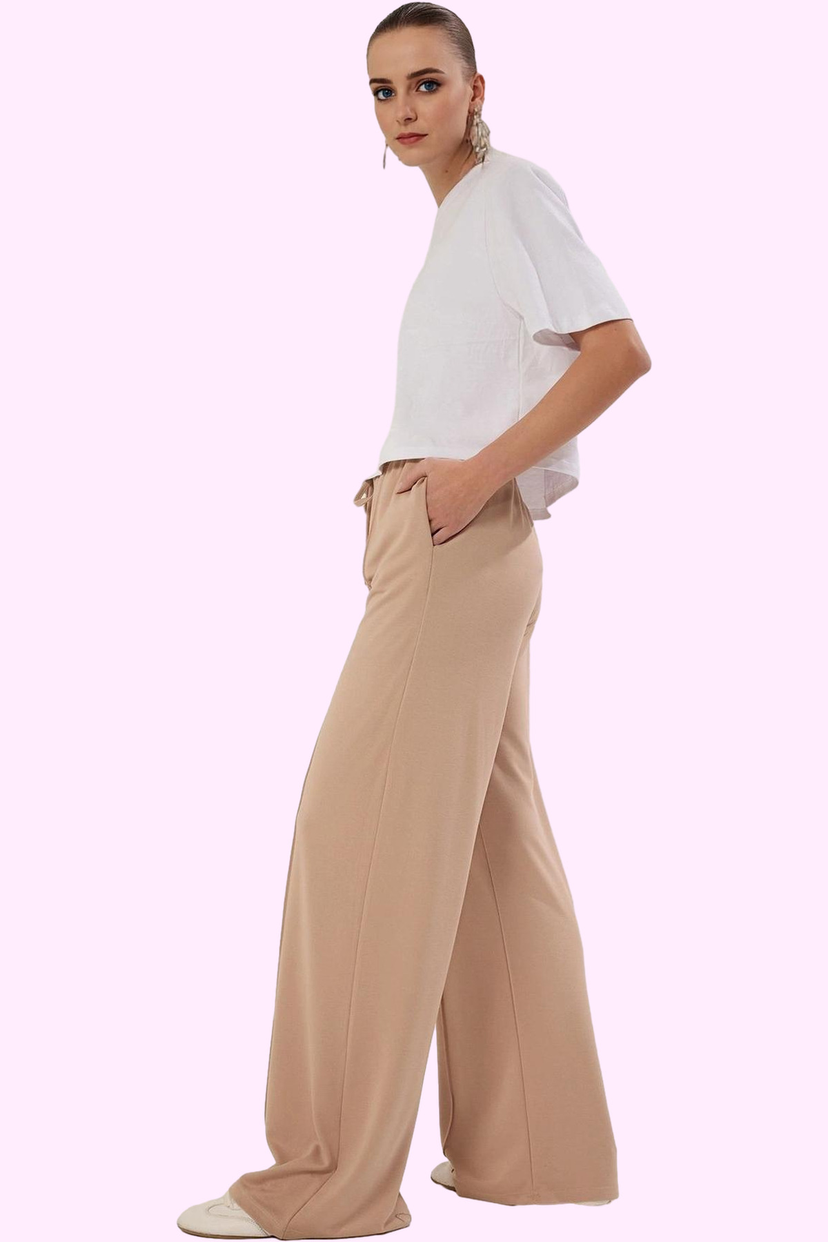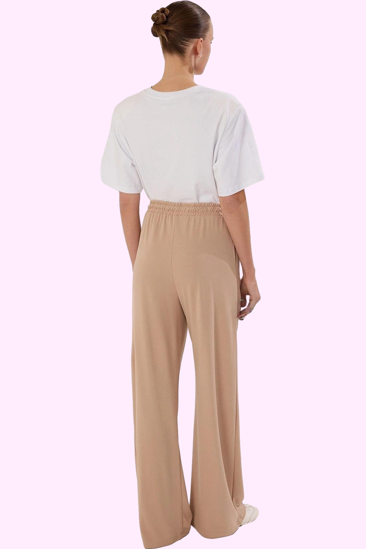; Kumaş Tipi: Örme; Paça Tipi: Geniş Paça; Bel: Yüksek Bel; Kalıp: Wide Leg; Desen: Düz; Renk: Bej; Ürün Detayı: Nervürlü; Koleksiyon: Casual / Günlük; Boy: Uzun; Siluet: Wide Leg; Ortam: Casual/Günlük; Dokuma Tipi: Pike; Materyal Bileşeni: 59% Viskoz, 41% Polyester; Yıkama Talimatı: T10; Sezon: İlkbahar / Sonbahar; Menşei: TR