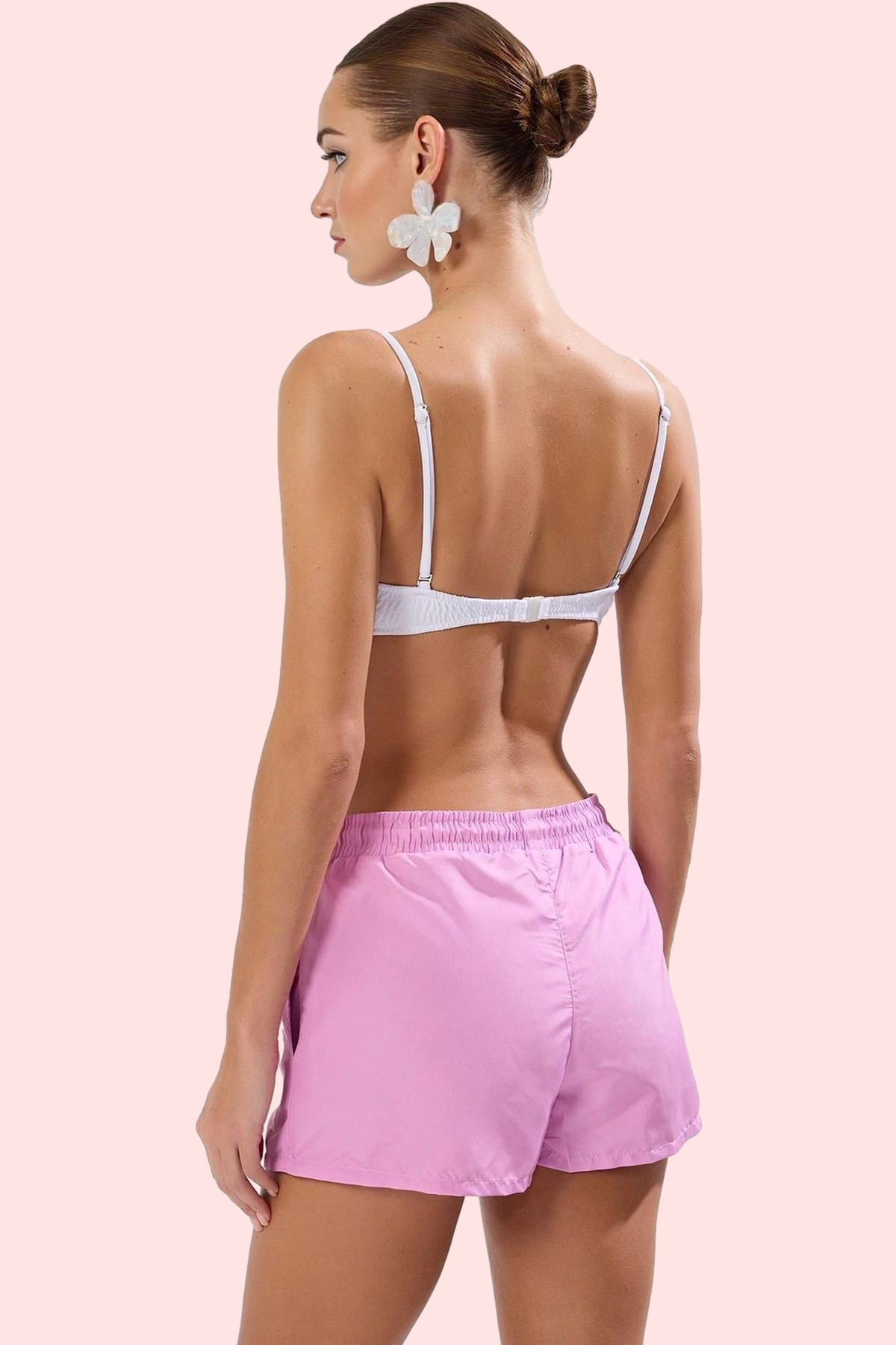 Bu şortla yazın tadını çıkarın! Kısa boyu ve rahat kesimiyle plajda, havuzda veya günlük hayatta özgürce hareket edebilirsiniz. Nefes alan, 100% polyester dokuma kumaşı sıcak havalarda bile serin ve rahat kalmanızı sağlar. Pembe rengi, yazın enerjisini yansıtırken, düz desen ve boru paça tasarımıyla şık bir görünüm sunar. Normal bel yüksekliği ile de hem rahat hem de şık bir tarz yaratır.