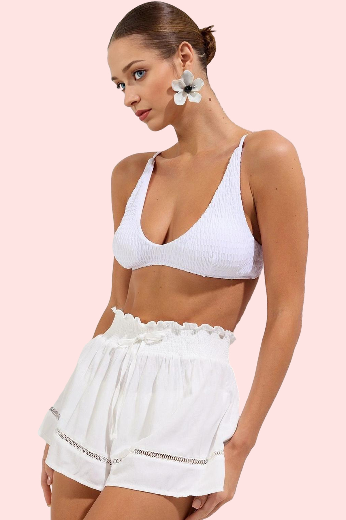 Bu ekru renkli kadın plaj şortu, yaz aylarında rahatlık ve şıklığı bir araya getiriyor. Normal bel yüksekliği ve boru paçası ile rahat bir kullanım sunarken, crinkle dokuma kumaşıyla da şık bir görünüm yaratıyor. Kısa boyu ve düz deseni sayesinde her vücut tipine uyum sağlıyor. Plajda, havuz başında veya günlük yaşamda kullanabileceğiniz çok yönlü bir parçadır.