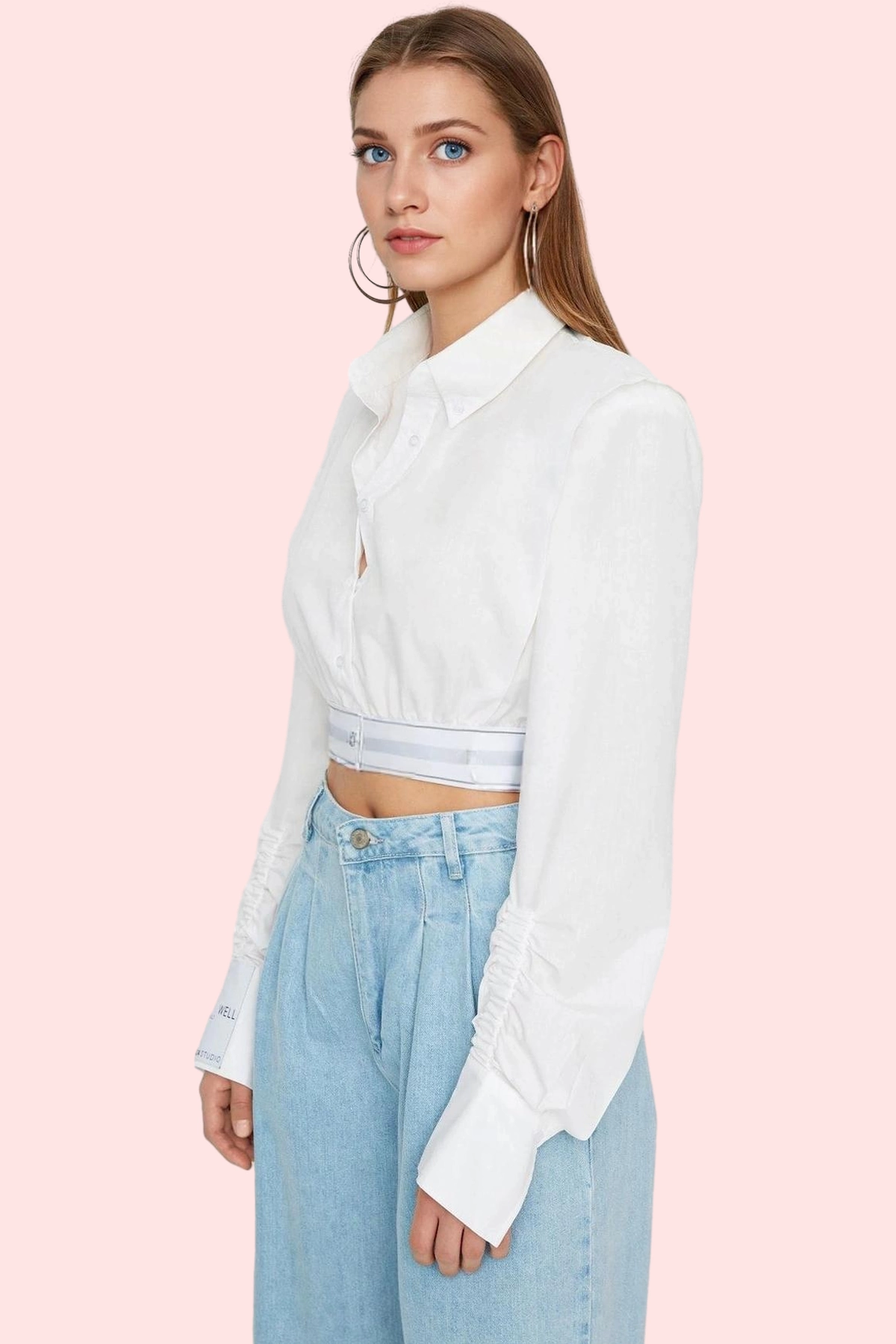 Kadın Poplin Dokuma Crop Gömlek Düz Desen Yaka Rahat Kalıp Günlük Kullanım Kaliteli Malzeme