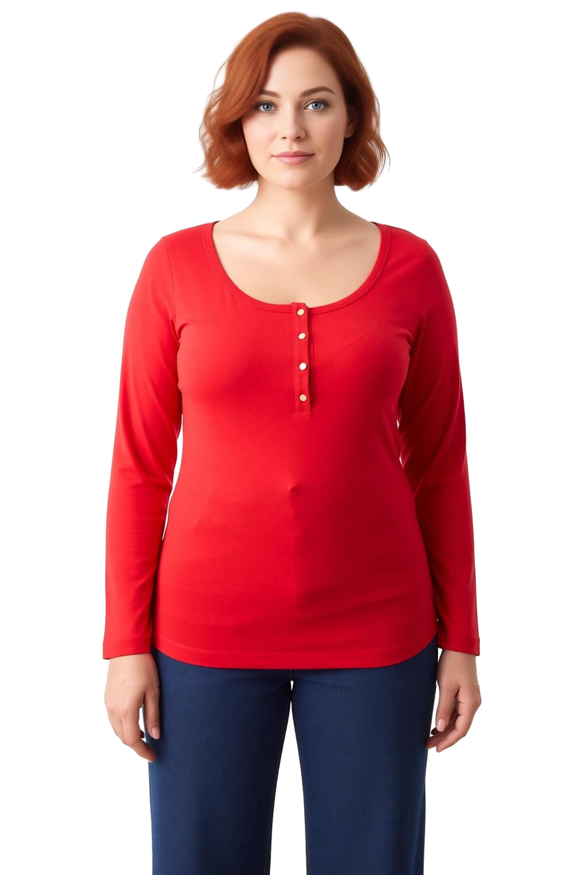 Kadınlar için özel olarak tasarlanmış bu uzun kollu üst, konfor ve şıklığı bir araya getiriyor. Vücuda oturan ancak hareket özgürlüğünü kısıtlamayan kalıbı, gün boyu rahat bir kullanım sunar. Ürünün ön kısmında yer alan zarif düğme detayı, basit bir tasarıma sofistike bir dokunuş katıyor. Likralı penye süprem kumaşından üretilmiş olması, yumuşak dokusu ve esnek yapısıyla öne çıkıyor. %100 pamuk içeriği, cildinize nazik davranırken aynı zamanda hava alabilirlik sağlayarak ferah bir his verir. Havuz yaka tasarımı, modern ve zarif bir görünüm sunarken, standart kesim kol yapısı her vücut tipine uyum sağlar. Casual ve günlük kullanım için ideal olan bu üst, ilkbahar ve sonbahar gibi geçiş mevsimlerinde tercih edilebilir. Regular boyu ve uzun kollu tasarımı, hem serin havalarda sıcaklık sunar hem de şık bir görünüm sağlar. Türkiye’de üretilen bu ürün, T01 yıkama talimatına uygun olarak kolayca bakım yapılabilir. Düz desenli yapısı, sade ve şık bir estetik sunar, bu da onu farklı alt giyim parçalarıyla kolayca kombinlenebilir hale getirir. Jean pantolonlar, taytlar veya eteklerle mükemmel uyum sağlayan bu üst, çok yönlü bir gardırop parçasıdır. Kadınların günlük yaşamlarında hem rahat hem de stil sahibi olmalarını sağlamak amacıyla tasarlanmıştır. Ürünün dokusu, likralı penye süprem olması sayesinde hem dayanıklı hem de esnektir, bu da uzun süreli kullanım için idealdir. Bu üst, rahatlığına önem veren ve aynı zamanda stilinden ödün vermek istemeyen kadınlar için harika bir seçenektir. Ürünün genel estetiği, minimalist ve çağdaş bir tasarıma sahiptir, bu da onu her türlü aksesuarla uyumlu kılar. Ürün, hem ev içinde rahatça giyilebilecek hem de dışarıda şık bir görünüm sergileyecek şekilde tasarlanmıştır. Bu üst, kadınların kendilerini iyi ve özgüvenli hissetmelerini sağlayacak şekilde özenle üretilmiştir. Ürünün kumaş bileşeni %100 pamuk olması, doğal ve çevreye duyarlı bir seçim olduğunu vurgular. Bu üst, kadınların dolabında bulunması gereken temel ve zamansız parçalardan biridir.