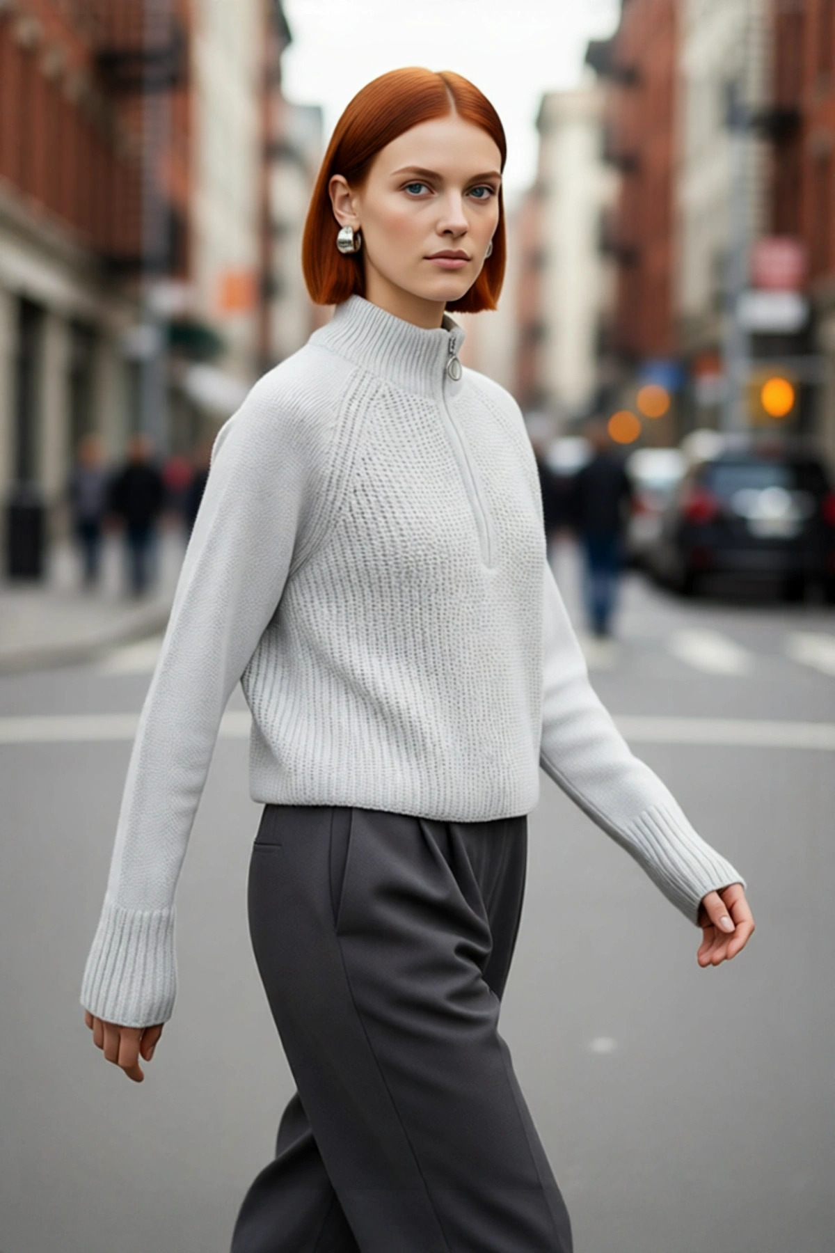 Ürün Özellikleri: Regular kalıp, akrilik materyal, düz desen, dik yaka, reglan kol, selanik triko kumaş, gri renk, baskısız tasarım, fermuarlı, crop boy.