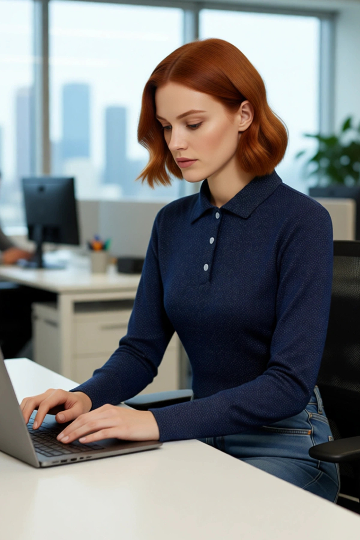 Bu Kadın Regular Kalıp Uzun Kollu Polo Yaka Simli Triko Kazak, modern kadının hem gündüz hem de gece şıklığına hitap eden eşsiz bir parçadır. Vücuda rahat oturan regular kalıbı ve uzun standart kollarıyla gün boyu konfor sunar. Simli iplik detayları, lacivert rengin derinliğiyle birleşerek her ortamda dikkat çekici bir parlaklık sağlar. Orta kalınlıktaki triko kumaşı kış ve sonbahar aylarında ideal sıcaklığı korurken, düz deseni minimalist ve şık bir duruş sergiler.
