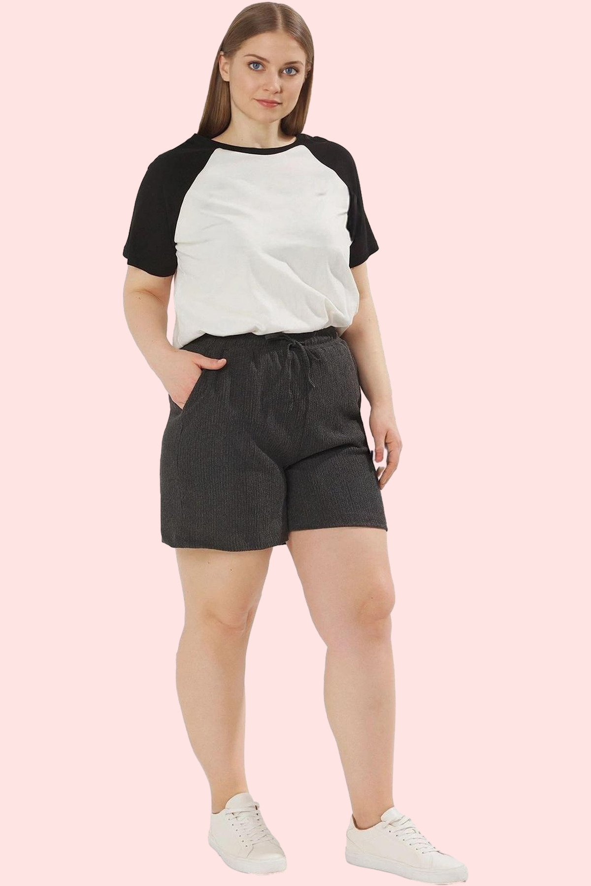 Bu sezonun trendi gri şort ile tarzınızı tamamlayın! Yüksek bel tasarımı ve regular fit kalıbıyla gün boyu rahatlık sunan şort, bürümcük dokuma özelliğiyle de göz alıcı bir görünüme sahiptir. Günlük kombinlerinizde mükemmel bir uyum sağlayacak olan şort, farklı üst giyim parçalarıyla kolayca kombinlenebilir. Nefes alan ve yumuşak dokusuyla yaz aylarında da konforlu bir kullanım sunar. Büyük beden seçenekleri ile her vücut tipine uygun bir seçenek sunuyor.