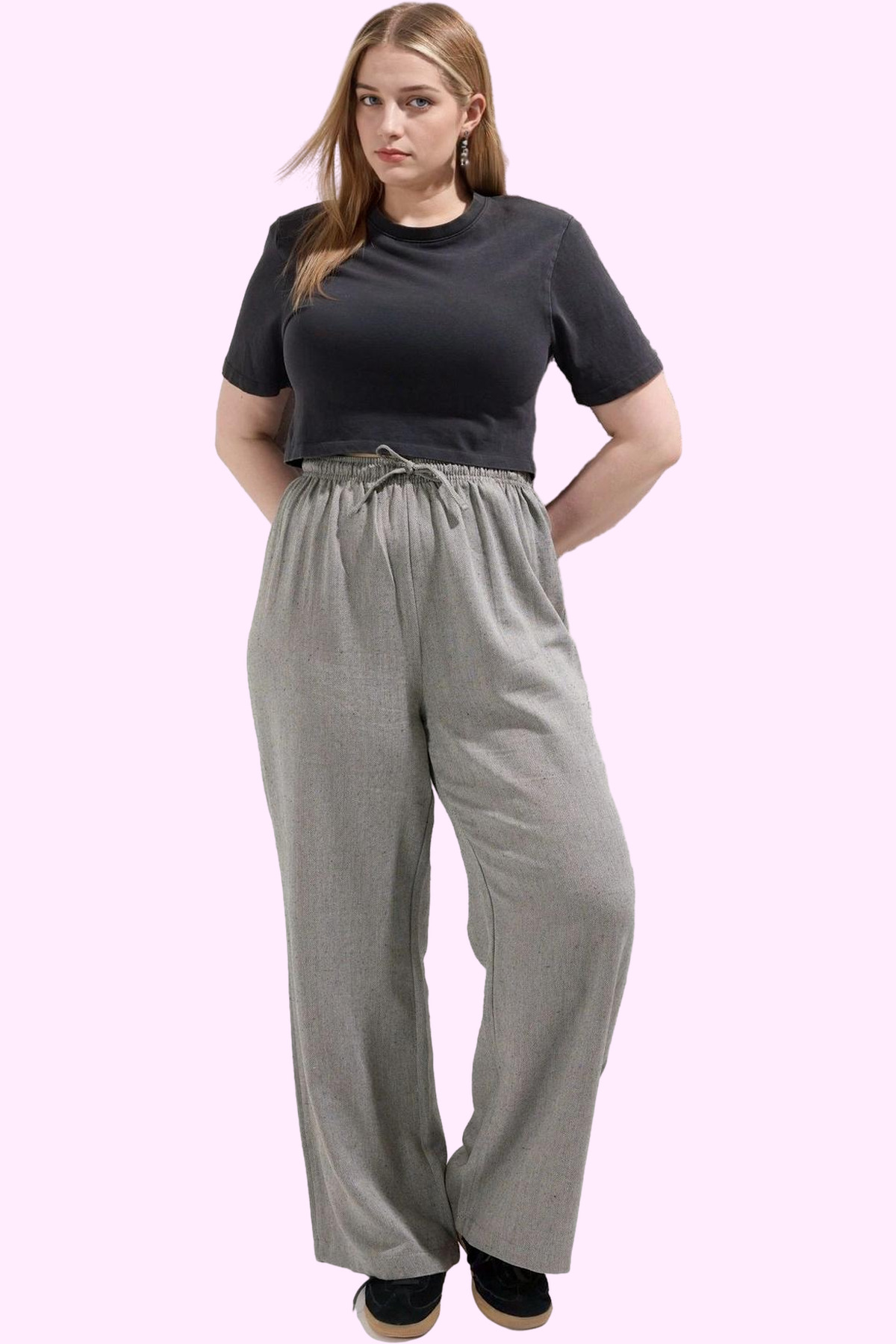 Rahatlığı ve şıklığı bir arada arayan modern kadınlar için tasarlanan bu pantolon, yaz aylarının keyfini çıkarmanız için mükemmel bir seçenek. Relaxed silueti ve geniş paçası ile gün boyu konfor sunarken, keten görünümlü dokusu sayesinde de şık ve tarz bir görünüm elde etmenizi sağlar. %40 Viskoz, %25 Pamuk, %25 Polyester ve %10 Keten karışımı, nefes alan yapısıyla sıcak yaz günlerinde serin kalmanıza yardımcı olur.