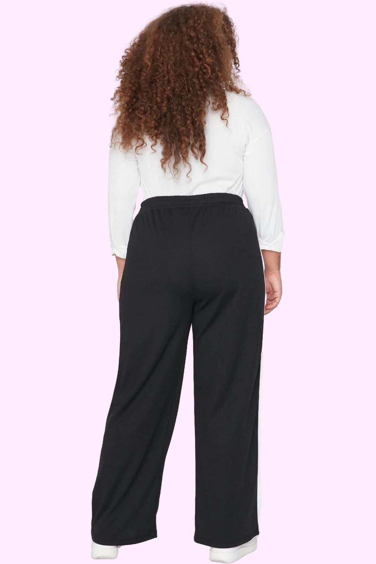 Kendinizi rahat ve şık hissetmenizi sağlayacak bu benzersiz kadın pantolonuyla tanışın! Siyah rengin zarafetine, renk bloklu desenin modern dokunuşu ve yüksek belin şıklığı bir araya gelerek mükemmel bir uyum yaratıyor. Örme krep kumaşıyla hem yumuşak bir dokuya hem de nefes alabilir bir yapıya sahip olan pantolon, gün boyu konfor sunuyor. Geniş paçası sayesinde hareket özgürlüğünüzü kısıtlamadan şıklığınızı ön plana çıkarabilirsiniz. Bu pantolonun özel tasarımı, her vücut tipine uyum sağlayarak mükemmel bir görünüm yaratmanızı sağlar.