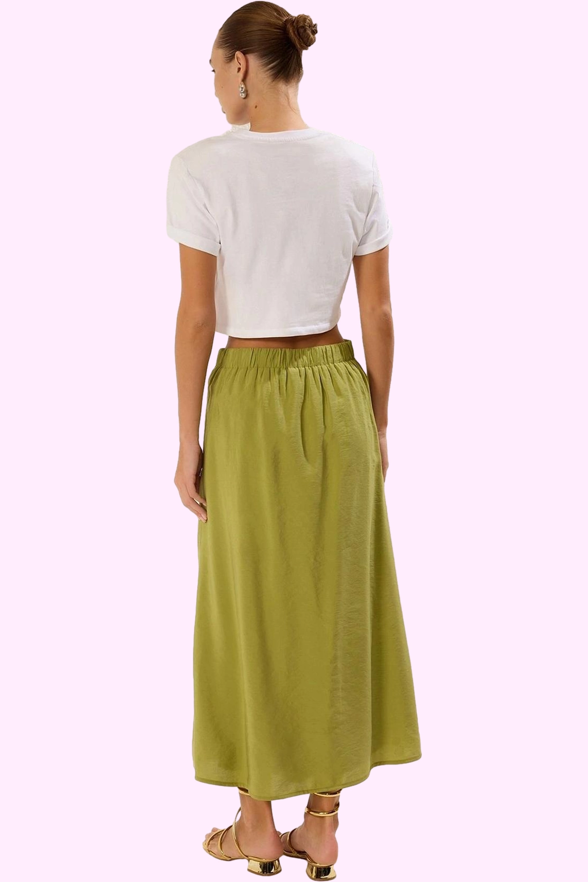 Etek, 36’dan 44’e kadar beden seçenekleriyle mevcuttur. Bu eteği düz renk tişörtlerle, şık bluzlarla veya crop top’larla kombinleyerek farklı stiller oluşturabilirsiniz. Yaz aylarında şık ve rahat görünmek istiyorsanız, bu haki renkli maxi etek tam size göre. Rahatlığı ve şıklığı bir arada sunan bu eteği hemen gardrobunuza ekleyin.