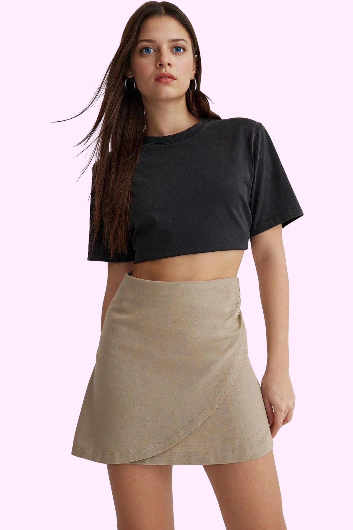 Rahat kalıbı ve kısa boyu ile her vücut tipine uyum sağlar. Günlük aktivitelerinizden, arkadaşlarınızla buluşmalarınıza, alışverişe kadar birçok farklı ortamda rahatlıkla giyebilirsiniz. Eteğin gri rengi, çok çeşitli renklerdeki üstlerle kolaylıkla kombinlenebilir; tişörtlerden, bluzlerden, gömleklerden, her şeye uyum sağlar.