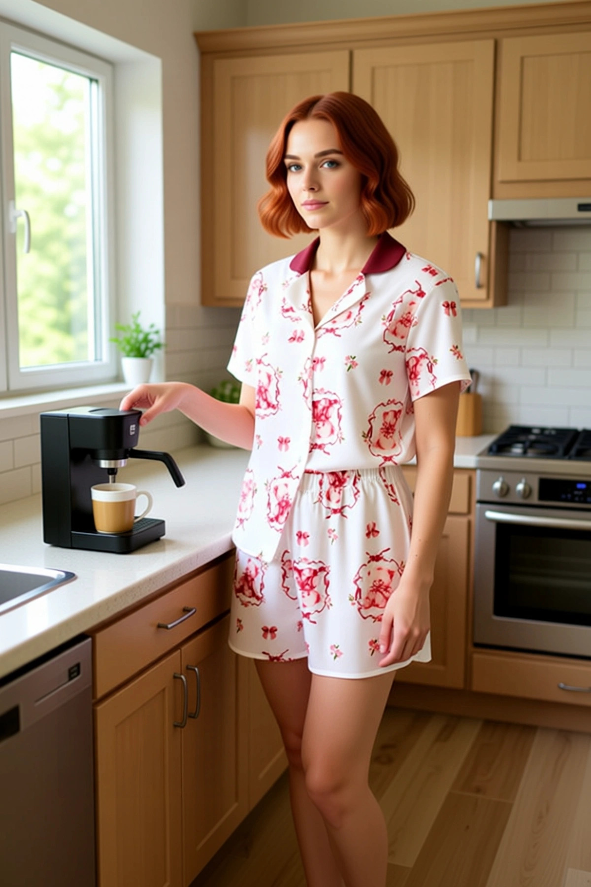 Kadınlar için özel olarak tasarlanmış bu viskon pijama takımı, üzerinde yer alan sevimli ayıcık ve zarif kurdele fiyonk desenleriyle göz dolduruyor. %100 viskon materyali, kumaşa inanılmaz bir yumuşaklık ve ipeksi bir dokunuş katıyor. Dokuma kumaş yapısı, nefes alabilirliği artırarak gün boyu süren bir konfor sağlıyor. Regular kalıbı sayesinde vücuda nazikçe oturur ve hareket özgürlüğünüzü kısıtlamaz. Gömlek ve şorttan oluşan bu iki parçalı takım, ev giyimi için hem şık hem de rahat bir alternatif sunuyor. Desenlerin tatlılığı ve viskonun hafifliği, bu pijama takımını vazgeçilmez kılıyor. Koleksiyonun ‘Homewear’ temasına uygun olarak tasarlanan ürün, evde geçirdiğiniz zamanı daha keyifli hale getirmeyi amaçlıyor. Takımın gömlek yakası, klasik bir estetik sunarken, kısa kolları sıcak günlerde serinlik hissi verir. Regular kesim, rahat bir kullanım sağlarken, şortun normal bel detayı ve boru paça stili, gün boyu konforlu bir deneyim sunar. Viskonun doğal olarak sahip olduğu yumuşaklık ve dökümlülük, bu pijama takımına ekstra bir zarafet katıyor. Cildinize dost yapısıyla alerjik reaksiyon riskini minimize eder. Bu pijama takımı, evde dinlenirken bile stilinden ödün vermek istemeyen kadınlar için ideal bir seçimdir. Yaz aylarında serin tutan yapısıyla öne çıkan bu pijama takımı, evde kullanım için mükemmeldir. Sade bir beyaz atlet ve yumuşak terliklerle kombinleyerek ev içinde rahat bir stil yakalayabilirsiniz. Dışarıda kısa bir yürüyüş için ise kot şort ve espadril ayakkabılarla da uyumlu bir görünüm elde edebilirsiniz. Ürünün uzun ömürlü olması için düşük sıcaklıkta elde yıkanması önerilir.