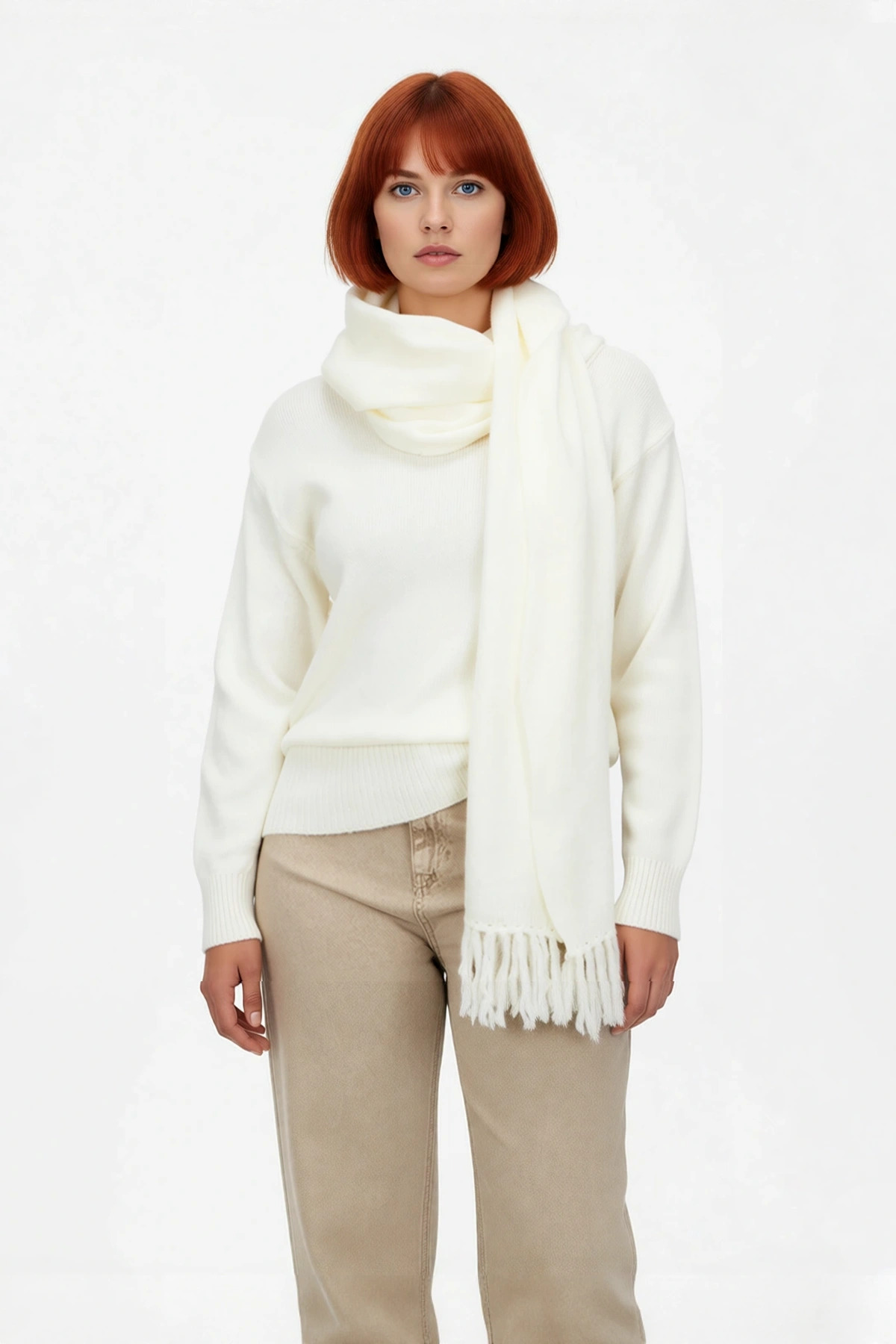 Kadın Şık Akrilik Triko Kazak, kışlık konforu ve zarafeti bir araya getiren özel bir parçadır. Ekru rengiyle her ortama uyum sağlayan bu kazak, regular kalıbı sayesinde gün boyu süren rahatlık sunar. %100 akrilik materyali, soğuk havalarda üstün sıcaklık sağlarken, yumuşak dokusuyla cildinize nazik bir his bırakır. Şal detaylı tasarımı, stilinize anında farklı bir hava katarken, düz deseni minimalist ve modern bir duruş sergiler. Bu kazak, şıklığı ve fonksiyonelliği bir arada arayan kadınlar için ideal bir seçenektir.