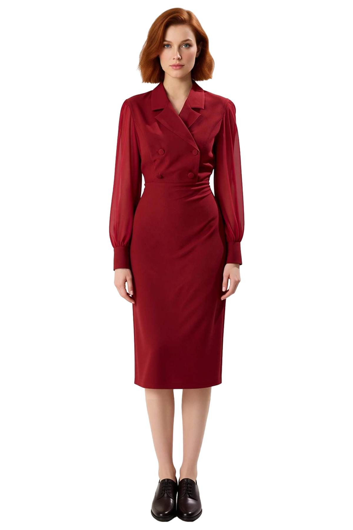 Kadın Şık Bodycon Dokuma Midi Elbise Ceket Yaka Ve Balon Kol Detayları İle Özel Günler İçin İdeal
