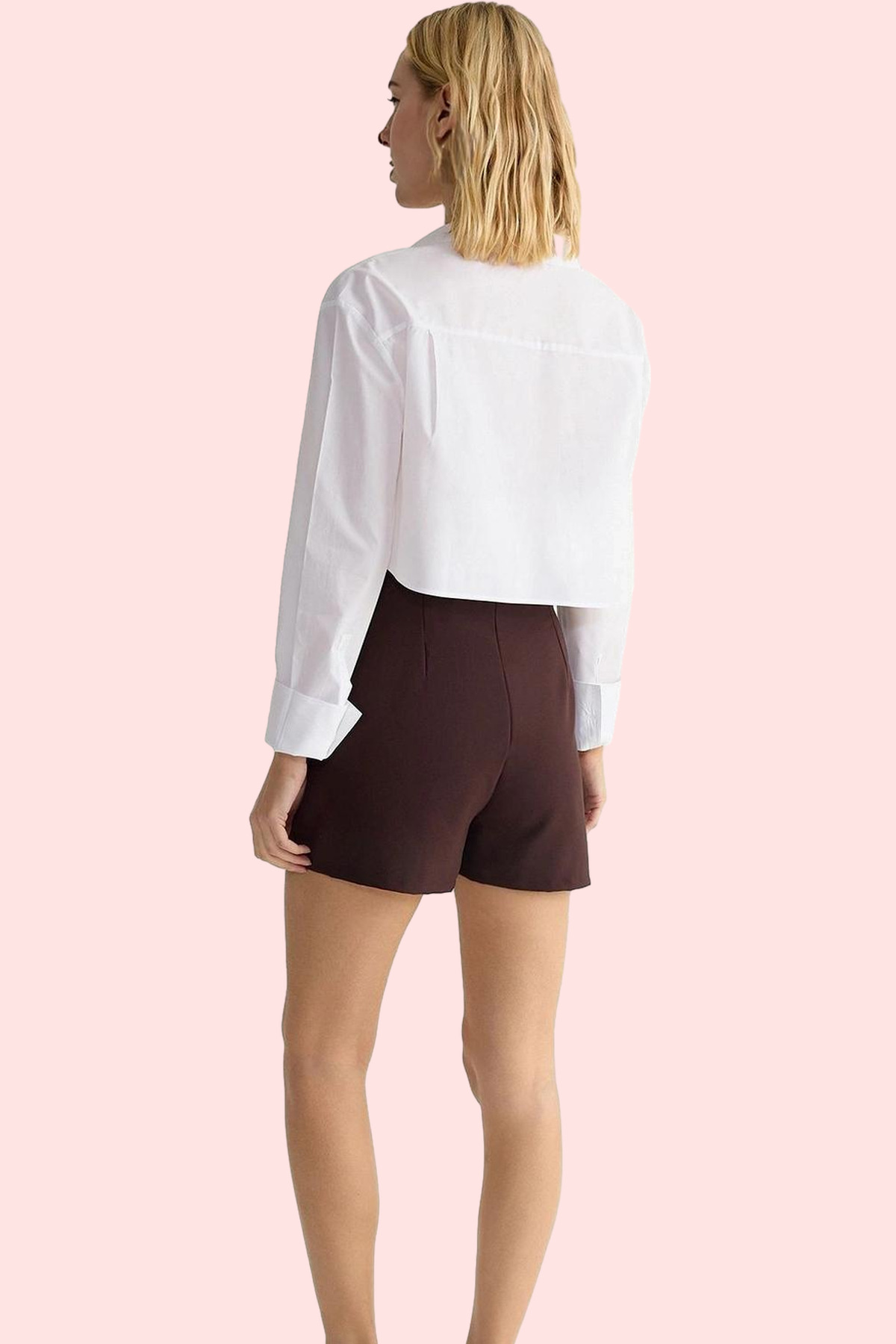 Her kadının gardırobunda olması gereken şık bir parça olan bu kahverengi şort etek, özel tasarım detaylarıyla dikkat çekiyor. Yüksek kaliteli polyester dokuma kumaştan üretilen etek, hem şık hem de konforlu bir kullanım sağlıyor. Dar paçası ve pilili detayı ile modern ve feminen bir görünüm sunarken, yüksek beli ile vücut hatlarınızı en güzel şekilde vurguluyor. Kemer detayı ise eteğe zarif bir dokunuş katıyor.