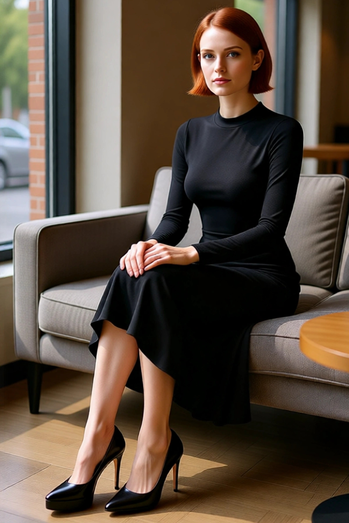 Ürün Özellikleri: A-line kalıp, polyester karışımlı materyal, düz desen, dik yaka, standart kol, kalın sandy kumaş, siyah renk.