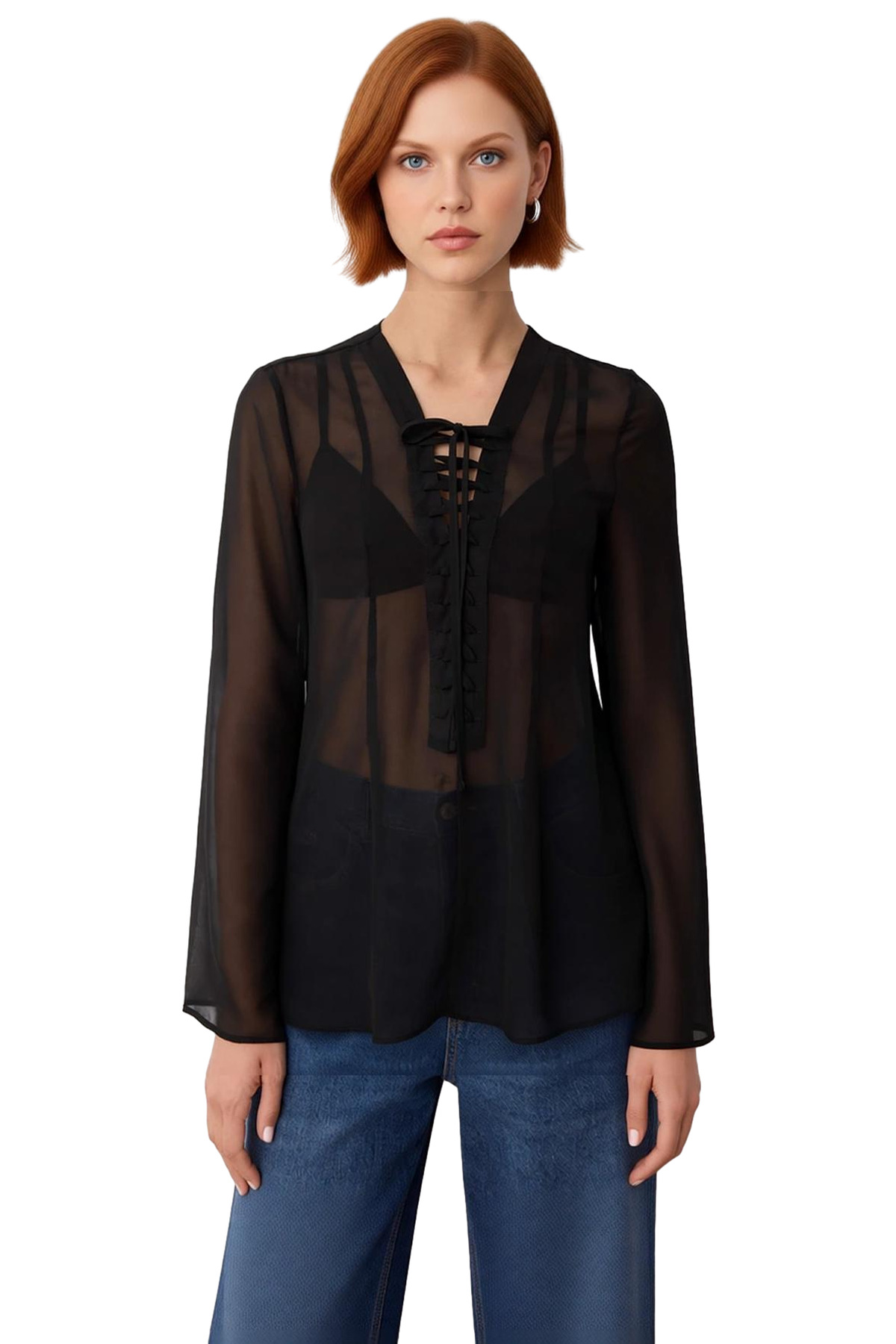Kadınlar için özel olarak tasarlanmış bu bluz, şıklığı ve zarafeti bir araya getiriyor. V yaka kesimi, yüz hatlarını vurgulayarak çekici bir görünüm sunarken, ön kısmındaki dikkat çekici bağlama detayı, ürüne modern ve stil sahibi bir hava katıyor. Uzun kollu tasarımı, hem serin günlerde sıcaklık sağlamak hem de zarif bir görünüm oluşturmak için idealdir. İspanyol kol detayı, hareket kabiliyetini artırırken aynı zamanda estetik bir dokunuş sunuyor. Yüksek kaliteli polyesterden üretilmiş dokuma şifon kumaşı, hafifliği ve akıcı yapısıyla ön plana çıkıyor. Bu kumaş, hem konforlu bir kullanım sağlıyor hem de bluzun şık duruşunu destekliyor. Regular kalıp, farklı vücut tiplerine uyum sağlayarak rahat bir kullanım sunar. Düz deseni sayesinde, bu bluzu farklı parçalarla kolayca kombinleyebilirsiniz. Şık ve gece ortamları için mükemmel bir seçim olan bu bluz, moda bilincine sahip kadınlar için tasarlandı. Ürünün bakımı için Hassas Yıkama yıkama talimatlarına uymanız önerilir. İlkbahar ve sonbahar aylarında rahatlıkla kullanabileceğiniz bu bluz, jean pantolonlar, etekler veya şık pantolonlarla harika bir uyum yakalayacaktır. Bu parça, gardırobunuzda zamansız bir şıklık yaratmanıza yardımcı olacaktır. Türkiye’de üretilmiştir.