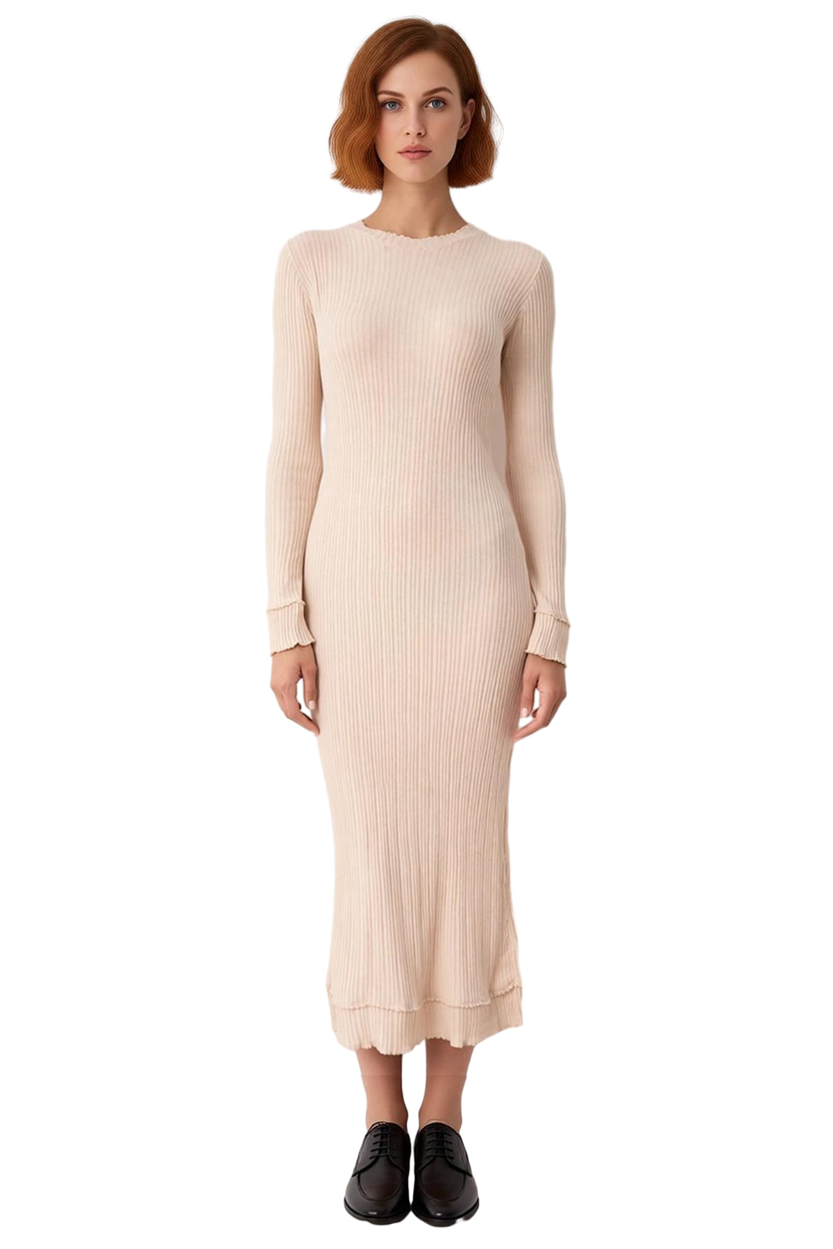 Dik yaka tasarımı, boyun bölgesini nazikçe sararak hem sıcak tutar hem de sofistike bir hava katar. Uzun ve standart kol tipi, gün boyu rahat hareket etme imkanı sunarken, midi boyu modern ve feminen bir stilin anahtarıdır. Triko kumaşının nefes alabilen yapısı, mevsim geçişlerinde ideal bir kullanım sağlar. Astarsız yapısı sayesinde hafiflik hissi verir ve makinede yıkanabilir özelliği ile pratik bir kullanım sunar. Bu elbise, uzun süreli kullanıma uygun kalitesiyle beklentilerinizi karşılar.