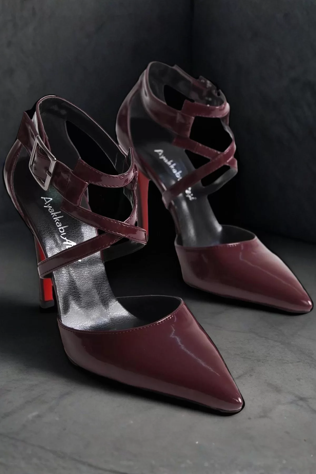 Kadın Sivri Burun Çapraz Bant Topuklu Ayakkabı Tokalı İnce Topuk Stiletto Edrie