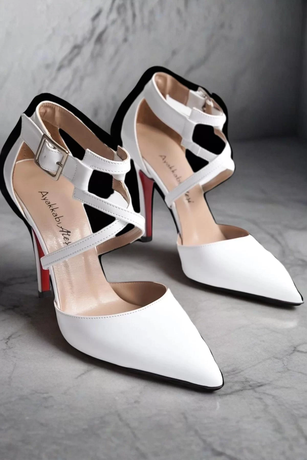 Kadın Sivri Burun Çapraz Bant Topuklu Ayakkabı Tokalı İnce Topuk Stiletto Edrie