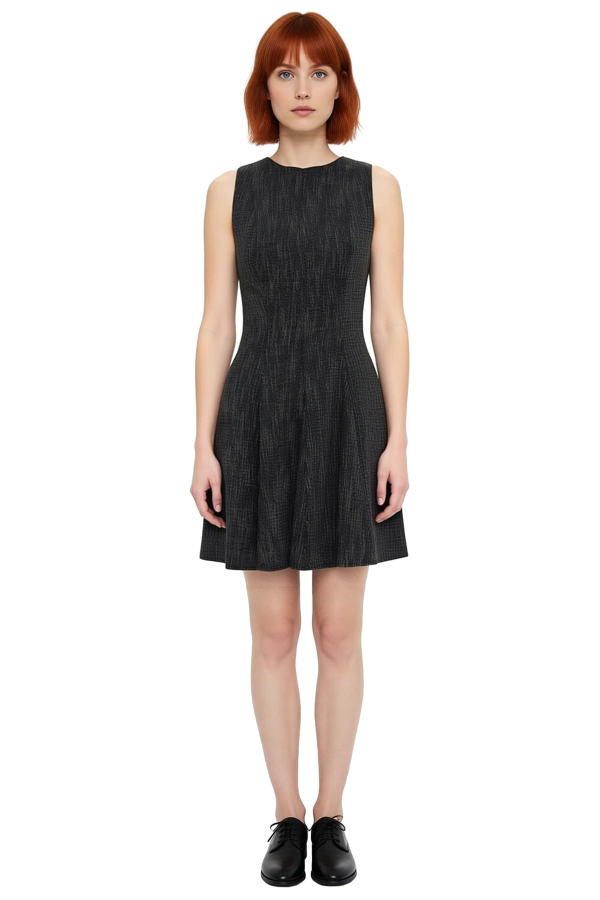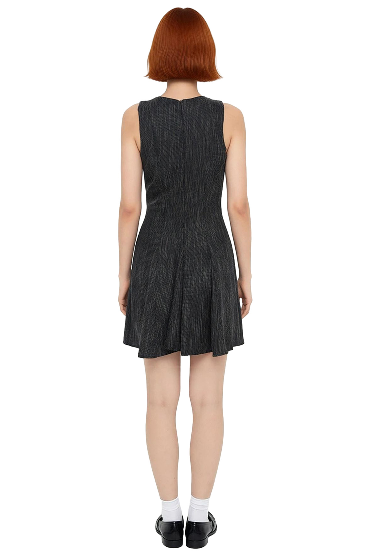 Bu zarif kadın elbisesi, skater kesimiyle genç ve dinamik bir duruş sergilerken, her adımda özgürlük hissi verir. %100 polyester materyalden üretilen bu elbise, hafif yapısı sayesinde gün boyu konfor sunar ve hareketlerinizi kısıtlamaz. Dokuma tüvit kumaşı, göz alıcı siyah rengiyle sade ama şık bir görünüm sunar. Düz deseni modern ve minimalist bir stilin anahtarıdır. Kolsuz tasarımı ve mini boyu ile özellikle sıcak havalarda gardırobunuzun kurtarıcı parçası olacak.