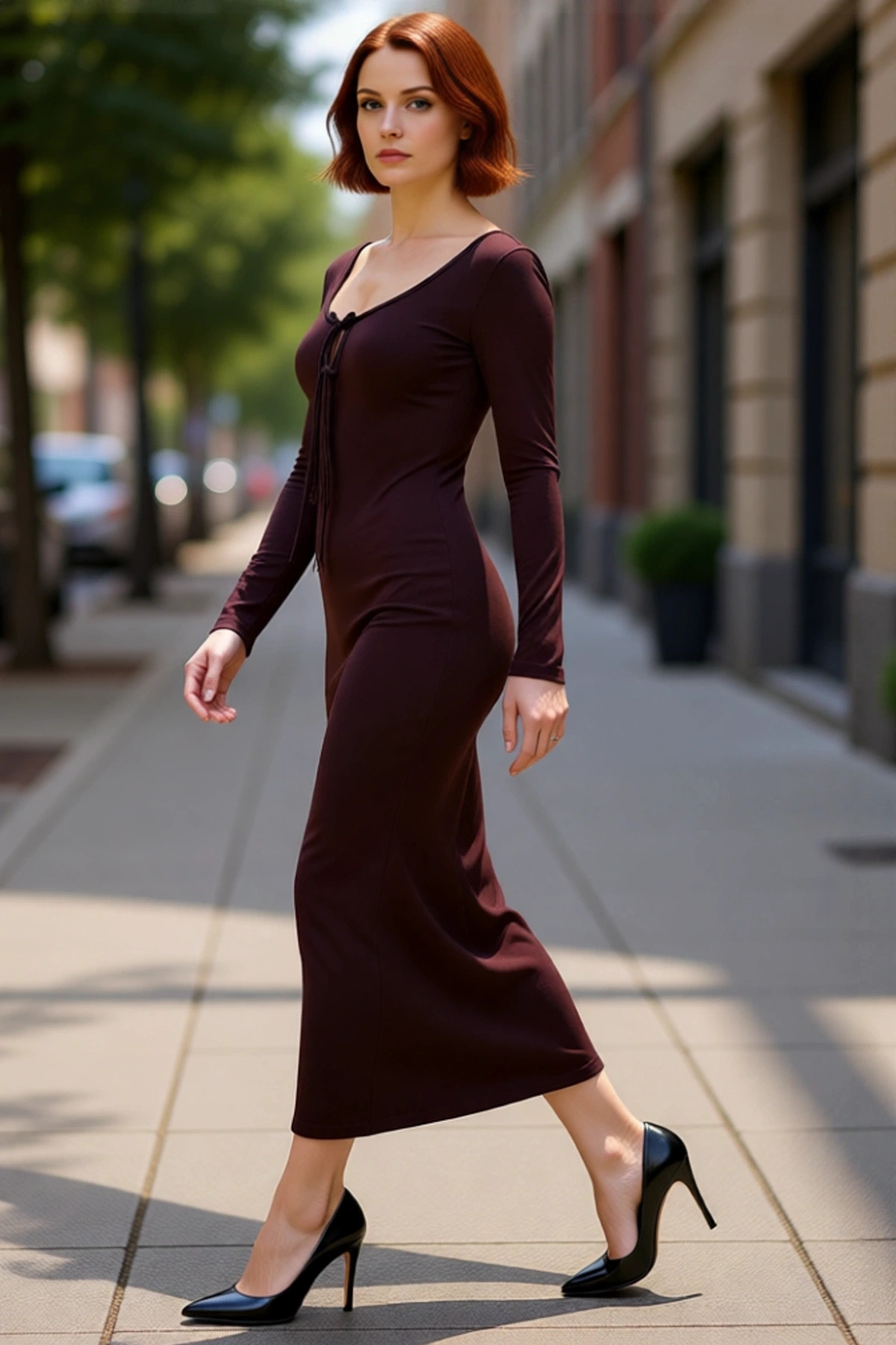 Kadın Smart Kesim Havuz Yaka Bağlama Detaylı Uzun Kol Bodycon Örme Maxi Abiye Elbise Kaliteli