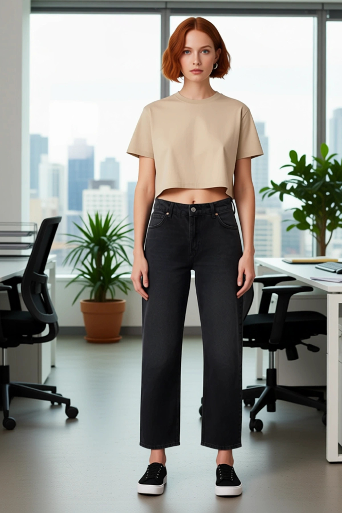Kadınlar için özel olarak tasarlanmış bu siyah straight kesim denim pantolon, her kadının gardırobunda bulunması gereken temel bir parçadır. %100 pamuk materyali, cildinize nazik davranırken aynı zamanda dayanıklılık ve uzun süreli konfor sunar. Düz deseni ve klasik siyah rengi, bu pantolonu zamansız bir parça haline getirir. Regular boyu ve straight kalıbı, her vücut tipine uyum sağlayarak zarif ve modern bir siluet oluşturur. Bu pantolon, rahatlığı ve şıklığı bir arada arayan kadınlar için ideal bir seçenektir. Denim kumaşın doğal dokusu ve esnekliği, hareket özgürlüğünüzü kısıtlamadan gün boyu konforlu bir deneyim sunar. Siyah rengin asaleti, bu pantolonu farklı kombinlerle kolayca eşleştirmenizi sağlar. Bu ürün, hem günlük kullanımda hem de daha özel anlarda tercih edilebilecek çok yönlü bir tasarıma sahiptir. Bu pantolon, şıklığı ve rahatlığı bir arada arayan kadınlar için ideal bir seçenektir. Bu pantolonun öne çıkan özelliklerinden biri, normal bel kesimidir. Bu bel yüksekliği, hem rahat bir oturuş sağlar hem de modern bir estetik sunar. Straight kesim paçalar, her adımda şıklığınızı vurgular. Bu pantolonun en önemli özelliklerinden biri, %100 pamuk materyalden üretilmiş olmasıdır. Bu sayede cildinize dost, nefes alabilen ve yumuşak bir dokunuş sunar. Rigid denim dokuması, pantolona formunu koruma yeteneği kazandırır ve zamanla daha da güzelleşen bir görünüm elde etmesini sağlar. Cool ve comfort persona ile tasarlanmış bu pantolon, dinamik yaşam tarzınıza ayak uyduracak şekilde üretilmiştir. Günlük kullanım için mükemmel bir seçimdir, çünkü hem rahatlığı hem de stil sahibi görünümü bir arada sunar. Bu pantolon, şık bir bluz veya basic bir tişört ile kolayca kombinlenebilir. Bu pantolon, her mevsim rahatlıkla giyilebilir. Özellikle ilkbahar ve sonbahar aylarında idealdir. Kış aylarında ise kalın kazaklar ve botlarla harika bir uyum yakalar. Kombin önerisi olarak, bu siyah straight kesim denim pantolonunu açık renk bir tişört ve beyaz spor ayakkabılarla tamamlayarak rahat bir günlük stil oluşturabilirsiniz. Daha şık bir görünüm için, saten bir bluz ve topuklu ayakkabılarla kombinleyebilirsiniz. Bu pantolonun bakımı oldukça kolaydır; makinede yıkanabilir ve düşük ısıda ütülenebilir. Bu sayede pantolonunuzun ömrünü uzatabilir ve her zaman ilk günkü gibi görünmesini sağlayabilirsiniz.