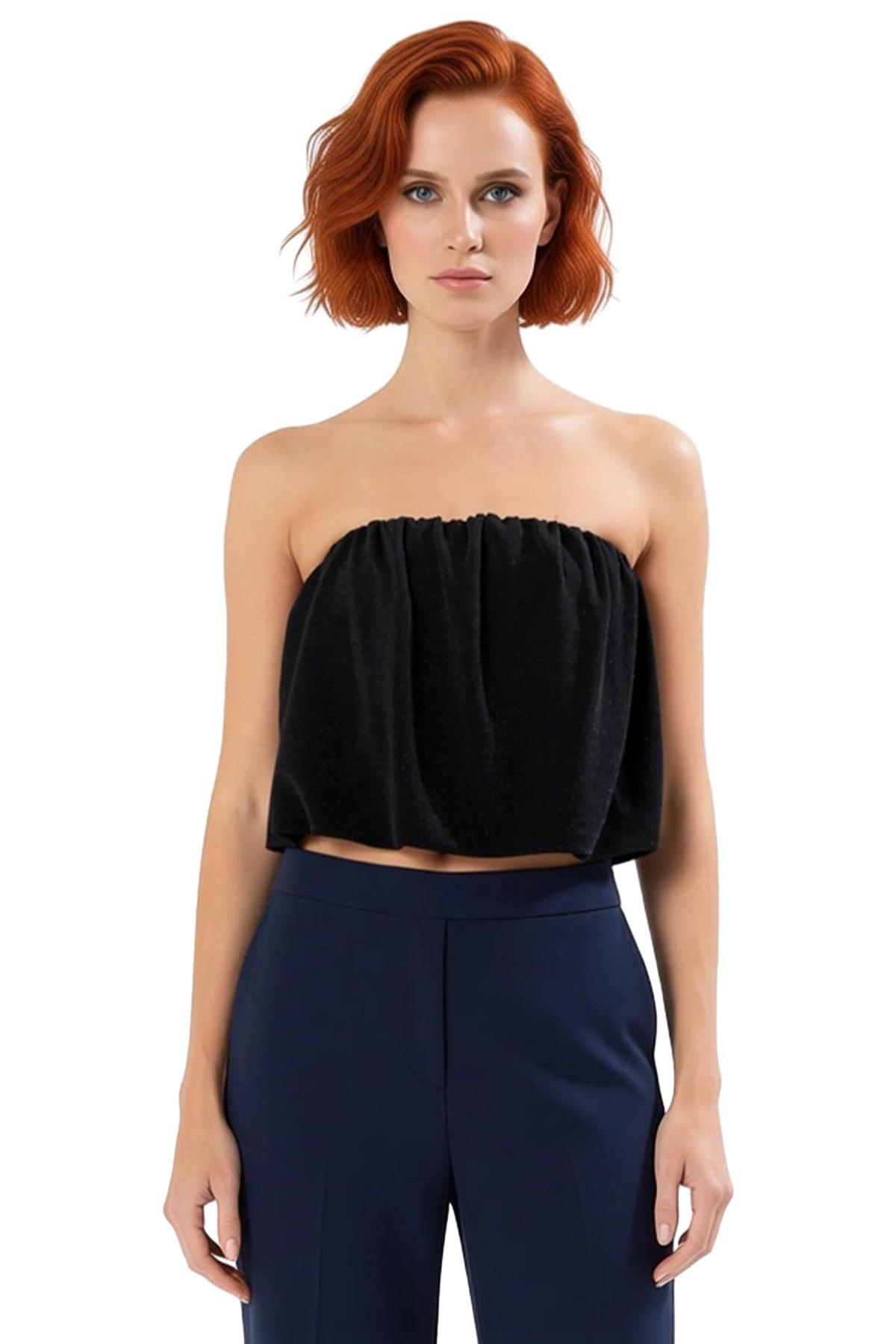 Bu kadın straplez bluz, zarif ve modern bir tasarıma sahiptir. Üzerindeki hafif dokulu örme kumaş, ürüne sofistike bir görünüm kazandırır. Polyester materyalden üretilmiş olması, uzun ömürlü kullanım ve kolay bakım imkanı sunar. Straplez yaka detayı, omuzları ve boyun çizgisini vurgulayarak feminen bir silüet oluşturur. Crop boyu, güncel moda trendlerine uygun olarak tasarlanmıştır ve yüksek belli pantolonlar veya eteklerle mükemmel bir uyum sağlar. Standart kol tipi ve kolsuz yapısı, rahat bir kullanım sunar. Astarı bulunan bluz, daha iyi bir örtücülük ve konfor sağlar. Bu ürün, şık ve gece davetleri için idealdir. İlkbahar ve sonbahar aylarında rahatlıkla kullanılabilir. Türkiye’de üretilmiş olan bu bluz, %100 polyester içeriği ile kalitesini kanıtlar. Moda odaklı kadınlar için tasarlanmış olup, gardıroplarına zarif bir dokunuş katacaktır. Yıkama talimatı T80’e dikkat edilerek ürünün ömrü uzatılabilir. Bu bluz, farklı aksesuarlarla kolayca kişiselleştirilebilir ve her ortamda dikkat çekmenizi sağlar. Hem şıklığı hem de konforu bir arada arayan kadınlar için harika bir seçenektir. Özel bir gününüzde veya sadece kendinizi iyi hissetmek istediğinizde tercih edebilirsiniz. Ürünün dokusu ve kesimi, onu öne çıkaran özelliklerindendir. Bu bluz ile kendinizi hem şık hem de rahat hissedeceksiniz. Farklı kombinlerle yaratıcılığınızı konuşturabilirsiniz. Bu parça, gardırobunuzun vazgeçilmezlerinden biri olacaktır.