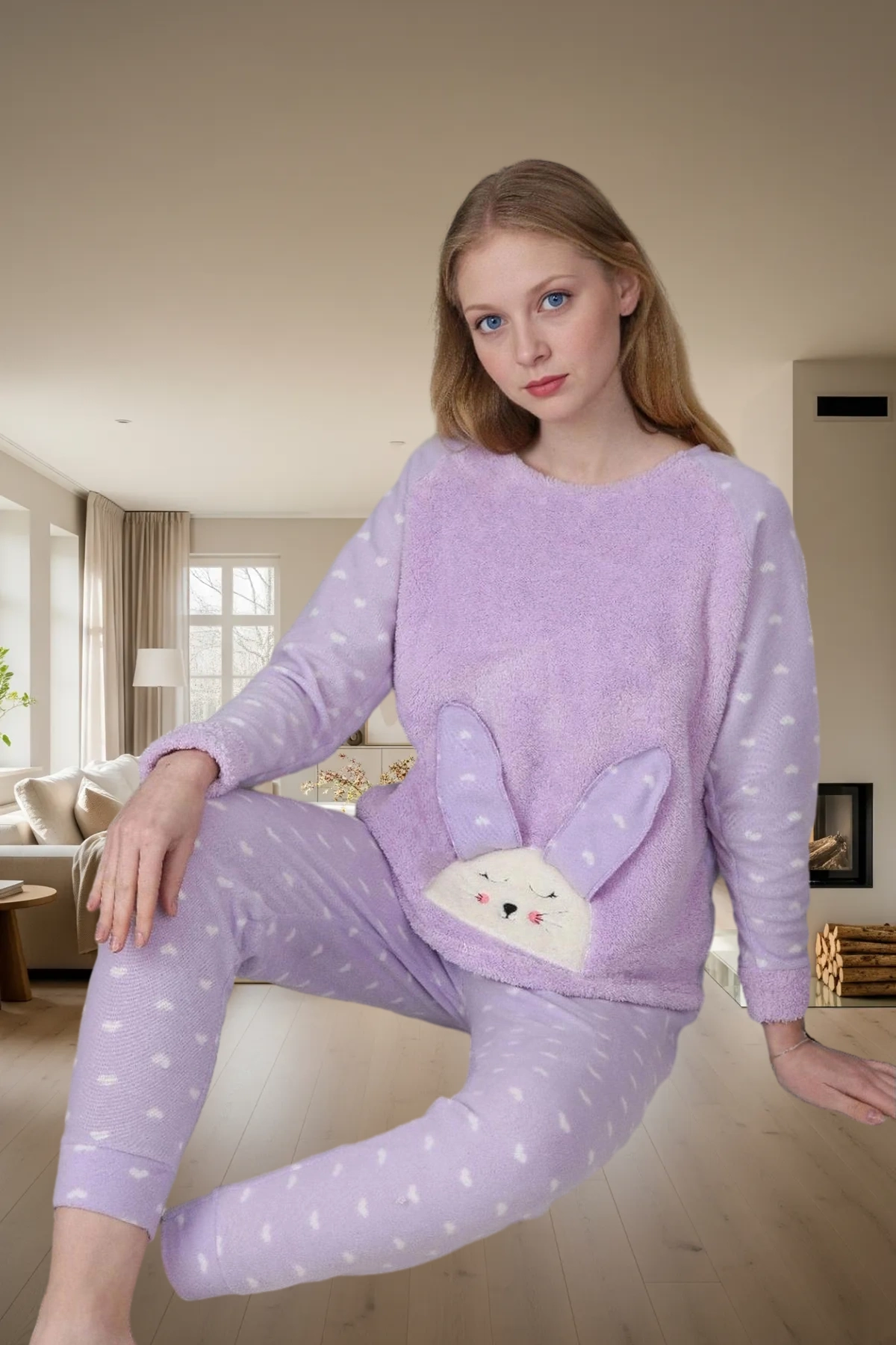 Kadın Tavşan Figürlü Polar Pijama Takımı ve Göz Bandı Fonksiyonel Dayanıklı Kaliteli Rahat