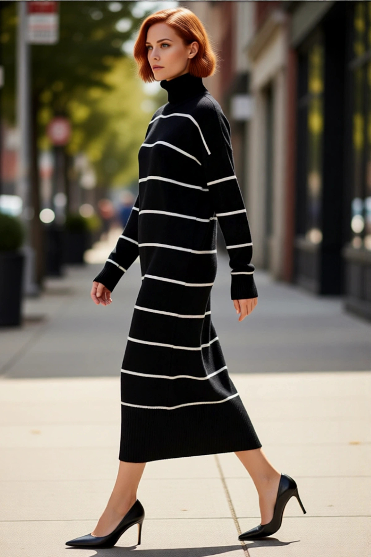 Balıkçı yaka tasarımı, boynunuzu nazikçe sararak rüzgarlı ve soğuk günlerde ekstra koruma sağlar, aynı zamanda şık ve zarif bir görünüm sunar. Düşük kol ve uzun kol detayları, rahat bir kullanım ve modern bir siluet oluşturur. Triko kumaşının selanik dokuma tekniği, elbiseye benzersiz bir doku ve dayanıklılık kazandırır. Astarsız olmasına rağmen iç göstermeyen ek özelliği sayesinde güvenle giyilebilir. Midi boyu, hem günlük kullanımda hem de özel anlarda rahatlık ve şıklığı bir araya getirir. Bakım talimatlarına uygun yıkandığında uzun ömürlü kullanım vadeden kaliteli bir üründür.